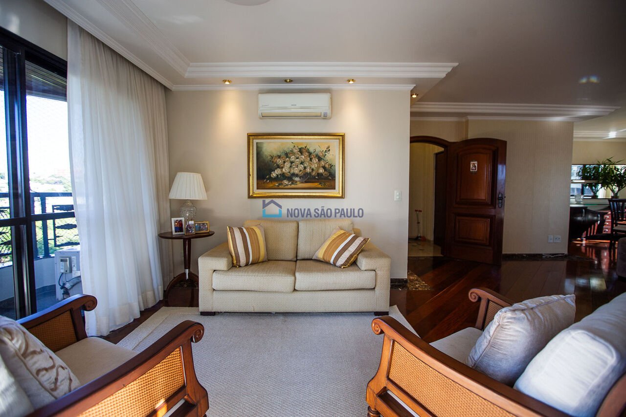 Apartamento de 240 m² com 4 suítes e 6 vagas. Alto Padrão no Jardim da Saúde. Apartamento de alto padrão, vizinho de uma base da polícia militar, com 240m², uma unidade por andar, salas com três ambientes (piso em madeira) e imenso depósito no subsolo. Tudo isso no bairro Jardim da Saúde, ao lado da Praça Flávio Xavier de Toledo. Unidade com 4 suítes, sendo duas com closet e terraços que trazem aos aposentos uma excelente iluminação natural. Além de todo o espaço e conforto proporcionados pelos amplos ambientes, você contará com a praticidade de armários distribuídos por todo o imóvel, além de ar condicionado em todos os cômodos. Pronto para morar e valor anunciado com porteira fechada. A área social do imóvel é composta por três amplas salas de estar, jantar e de TV, com um lindo jardim de inverno ao fundo e uma incrível vista permanente para a Praça Flávio Xavier de Toledo. Apartamento localizado em um dos pontos mais privilegiados da região da saúde, próximo a opções para lazer e vida saudável, garantindo ainda mais segurança para a sua família. Nas proximidades do imóvel, você terá o Shopping Plaza Sul, além de hipermercados, academias, escolas, e diversas outras opções. O imóvel está localizado nas proximidades das principais vias da região, como as avenidas principais, além das rodovias que permitem acesso ao ABC paulista e ao litoral Sul. Venha conferir a qualidade de vida que o Jardim da Saúde tem a oferecer para você.