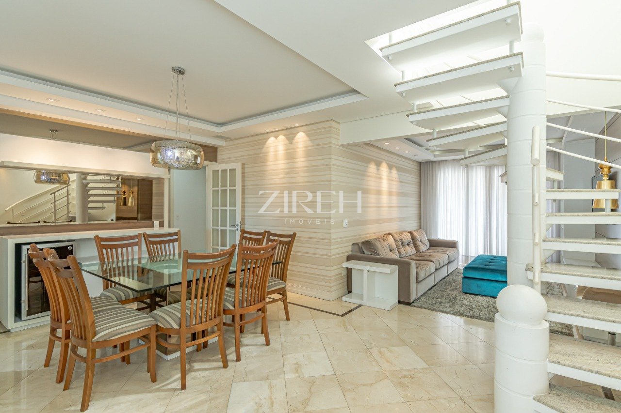 Cobertura Duplex no Champagnat - Um lar com alma de casa. Imagine viver em um lugar onde a luz atravessa os ambientes com liberdade e o vento circula entre os cômodos como se o espaço respirasse. Esta cobertura duplex no coração do Champagnat é mais que um imóvel com uma bela vista, é uma casa suspensa com 258m² privativos, onde conforto, privacidade e possibilidades se encontram em dois pavimentos completos, conectados por elevador. Com face norte e vista livre e definitiva, o apartamento recebe sol o dia todo e conta com esquadrias com vidros insulados, que garantem isolamento térmico e acústico em todos os ambientes. No primeiro piso, o destaque é para a integração dos espaços: Sala de estar e jantar mobiliadas, com projeto de som ambiente, ar-condicionado split e acesso à varanda. Lavabo com ventilação natural. Cozinha planejada, com possibilidade de abertura para o living. Lavanderia separada, também ventilada e com armários sob medida. Três dormitórios, sendo uma suíte com hidromassagem e ar-condicionado split. Todos os quartos contam com armários planejados. Um segundo banheiro completo atende os demais quartos. Os banheiros da suíte e social contam com piso aquecido, garantindo ainda mais conforto nos dias frios. No piso superior, o projeto se abre para momentos de lazer e contemplação: Hall espaçoso de chegada. Sala de inverno com lareira a lenha, perfeita para os dias frios. Banheiro completo. Área gourmet com churrasqueira a carvão, solarium e piscina. Aqui, você pode transformar esse espaço em um verdadeiro clube particular, com tudo o que sempre sonhou em ter sem sair de casa. Um ambiente com enorme potencial para se tornar o cenário de momentos inesquecíveis. Outros diferenciais: Elevador com acesso aos dois pavimentos. Área técnica reservada para as condensadoras, garantindo mais estética e praticidade. 3 vagas de garagem, com possibilidade de negociação de mais 2. Uma cobertura que combina o conforto de uma casa com a vista e a segurança de um alto padrão urbano no endereço mais desejado da região. Pensado para o seu bem-estar, o condomínio dispõe de espaços para celebrar e relaxar, como o salão de festas e o playground, além de uma academia equipada para manter você ativo. A segurança é uma prioridade, com portaria 24 horas para sua tranquilidade. A