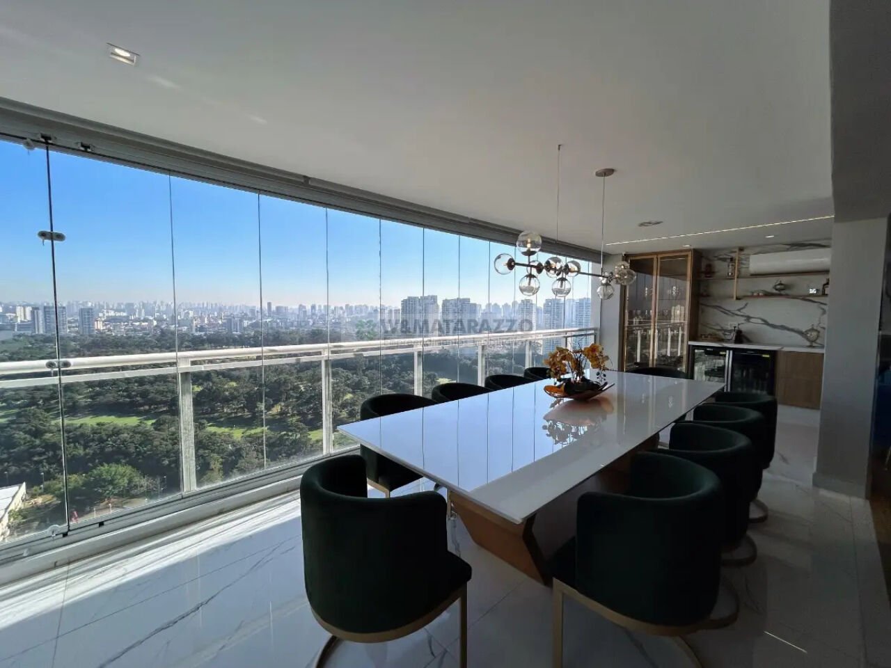Esta cobertura de luxo, com uma área total de 504m², oferece um design elegante e funcional, ideal para quem busca conforto e sofisticação. No térreo, a entrada é marcada por um hall privativo com uma porta pivotante que confere um toque de modernidade e exclusividade. O lavabo planejado é um exemplo do cuidado com os detalhes. O living espaçoso acomoda três ambientes distintos: estar, jantar e home theater, todos integrados de forma harmoniosa. A varanda envidraçada com pé-direito duplo e persianas automatizadas proporciona uma vista panorâmica deslumbrante do Golf Club e da represa, criando um ambiente perfeito para relaxar. A cozinha, integrada com um bar e adega, além de uma torre quente, é um convite para quem gosta de cozinhar e receber amigos e familiares. A despensa e a lavanderia planejada garantem praticidade no dia a dia. Os quatro dormitórios, todos suítes, oferecem privacidade e conforto, sendo que a suíte master conta com um walk-in closet e uma hidromassagem, proporcionando um espaço de relaxamento e luxo. O escritório planejado é ideal para quem trabalha em casa, e as máquinas de ar-condicionado instaladas em todos os ambientes asseguram climatização perfeita. No piso superior, a sala de estar e home theater continuam a oferecer o máximo de conforto e entretenimento. O espaço gourmet com churrasqueira é perfeito para eventos sociais, enquanto a piscina com hidromassagem e deck oferece um refúgio particular. A varanda com vista 360º panorâmica, a sauna, o banheiro social, o escritório com banheiro completo e a suíte extra adicionam ainda mais funcionalidade e conforto. O espaço destinado para uma futura academia complementa as necessidades de uma vida moderna e ativa. As cinco vagas cobertas no primeiro subsolo garantem segurança e conveniência. A cobertura é toda planejada com acabamento impecável, piso em madeira e revestimento em porcelanato, pronto para receber pessoas que prezam pelo bom gosto. Venha conferir essa excelente oportunidade!