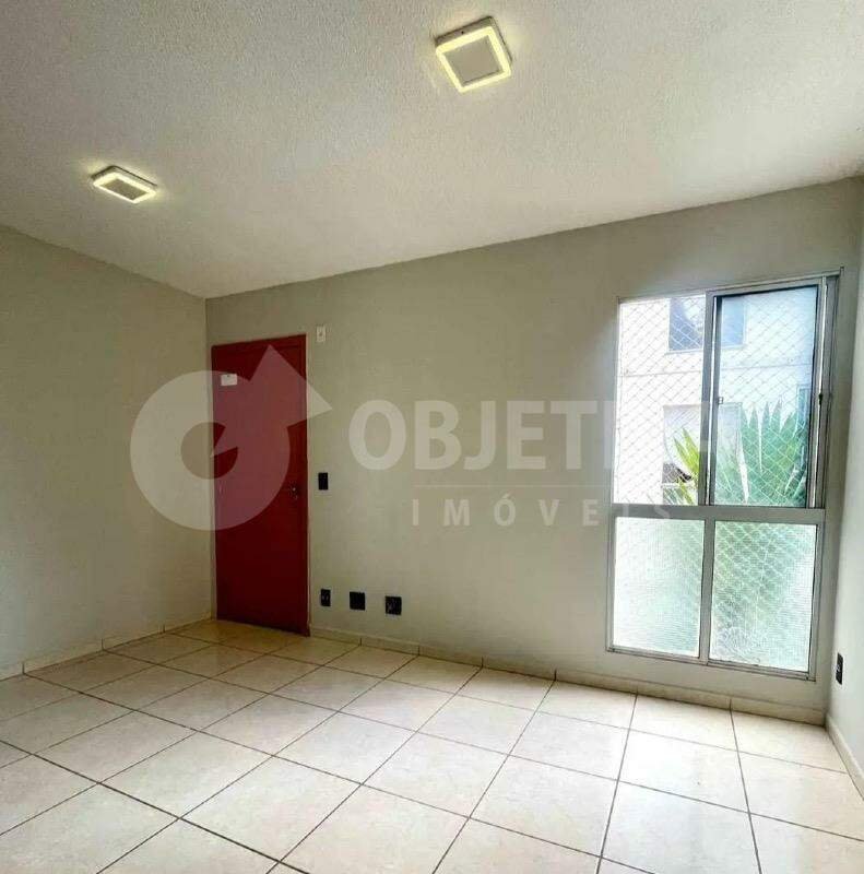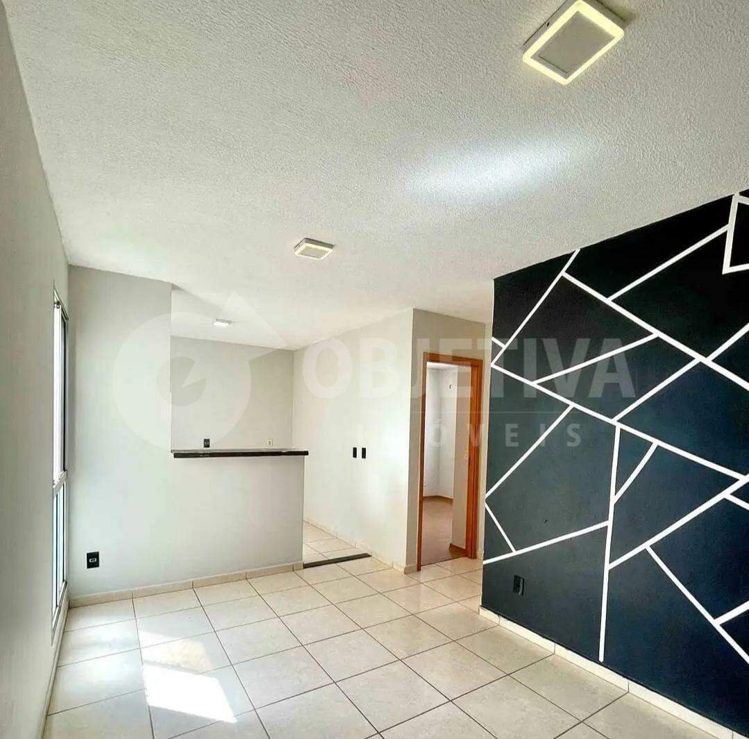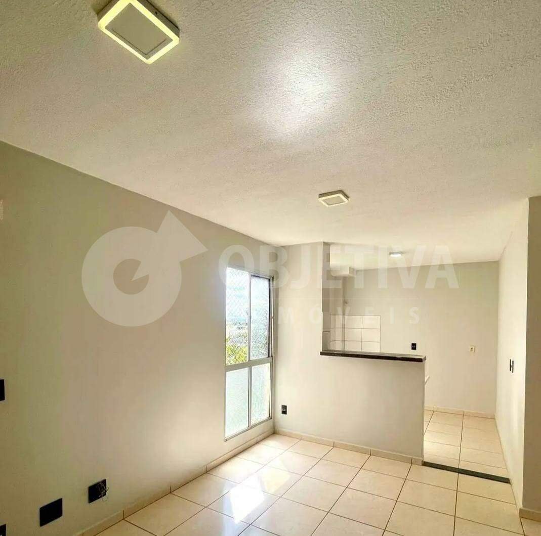 Apartamento no bairro Shopping Park em Uberlândia disponível para aluguel, com 44 metros quadrados, 2 quartos, banheiro, sala, cozinha, área de serviço, garagem para 1 carro. Telas de proteção e iluminação. Portaria 24 horas, segurança, quadra de esportes, piscina, salão de festas, playground, salão de jogos, brinquedoteca.