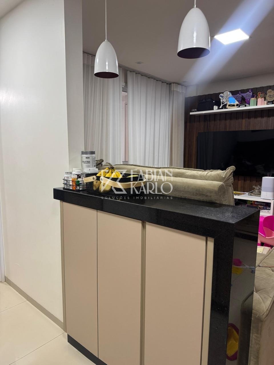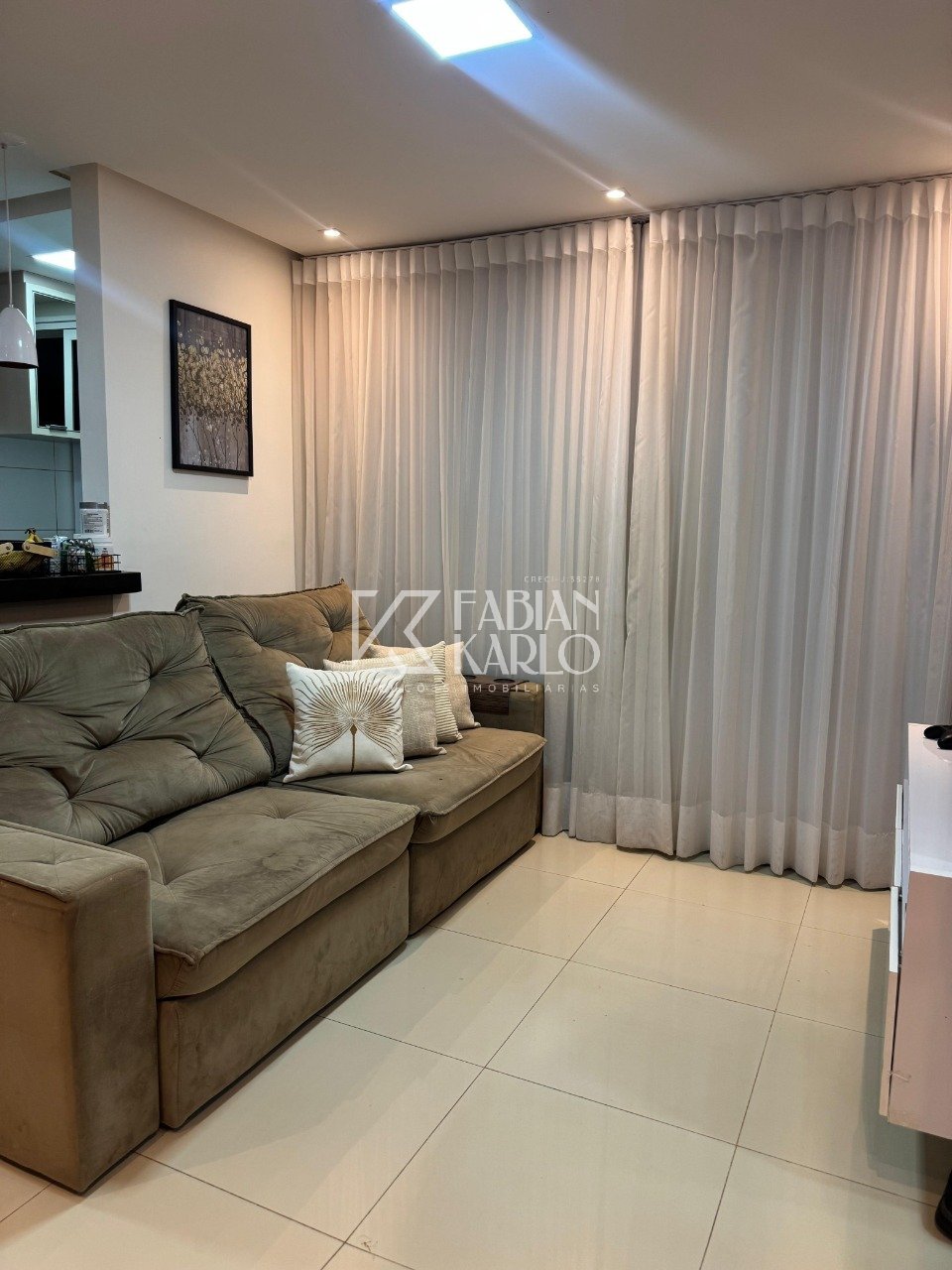 Armários planejados Varanda com cortina de vidro Painel de TV e cristaleira Fechadura eletrônica 1 vaga de garagem coberta Ambientes: Sala de estar Banheiro social 2 quartos, sendo 1 suíte Itens que ficam no imóvel: Cooktop Cortinas