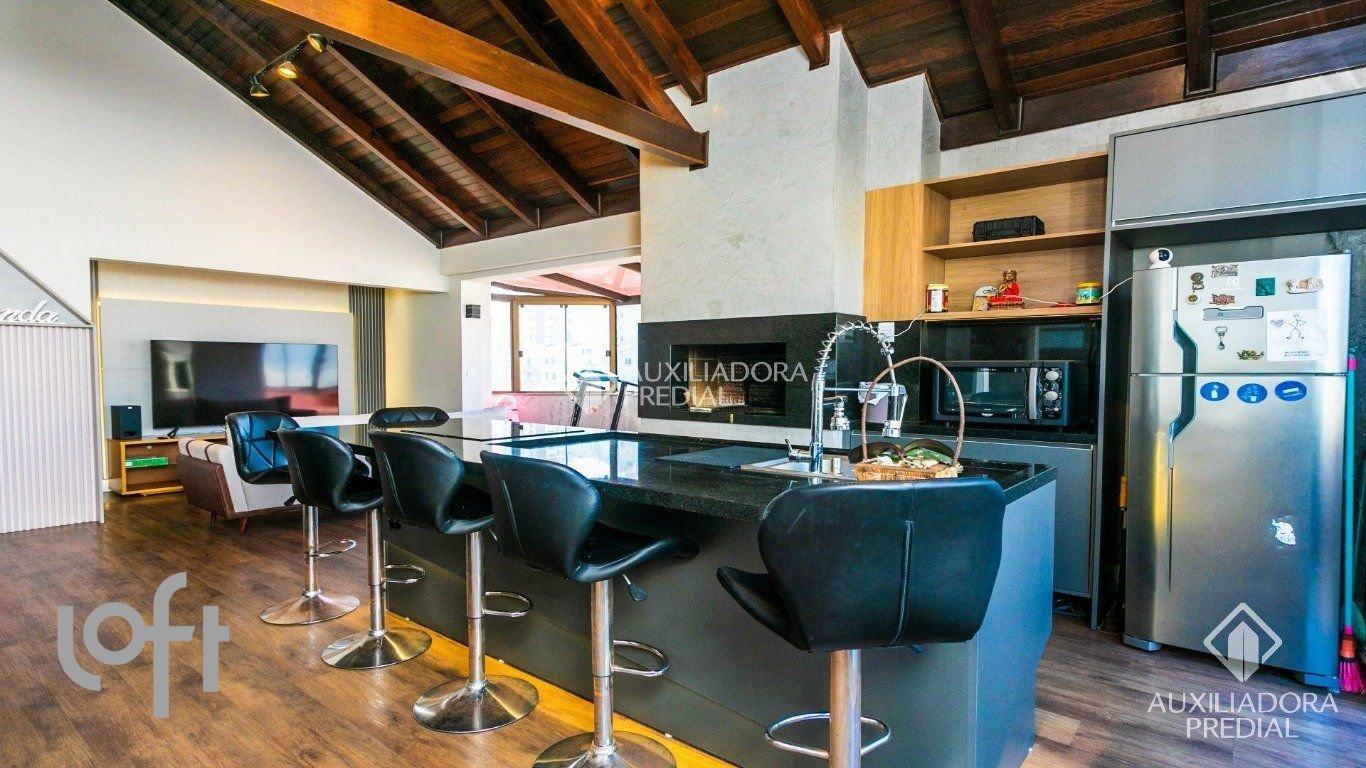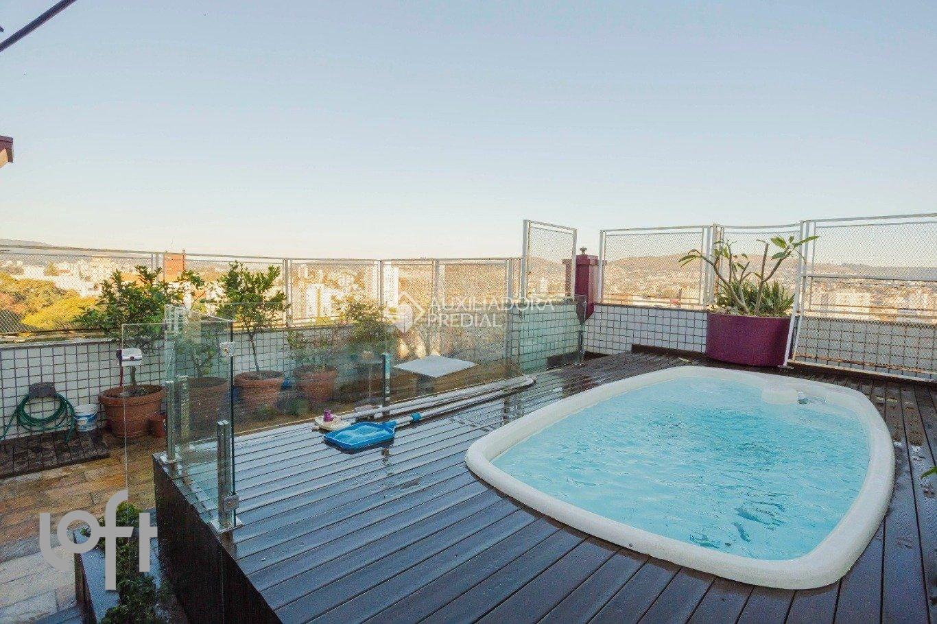 COBERTURA 3 QUARTOS 2 VAGAS NO BAIRRO PETROPOLIS TOTALMENTE REFORMADA, PRONTA PARA MORAR, fino acabamento e mais de 200m² de área! Distribuída, no primeiro piso, em living 2 ambientes com lareira e ampla vista panorâmica, cozinha americana com móveis sob medida, área de serviço separada. 2 amplos dormitórios sendo 1 suíte com closet e 1 dormitório de solteiro com metragem grande, todos com móveis sob medida e ar condicionado split. No segundo piso, sala de TV com sacada integrada, dormitório transformado em home office com móveis sob medida, amplo espaço gourmet com bancada em granito e churrasqueira, banheiro social. Área externa com piscina e deck. VISTA DA CIDADE 360 GRAUS! 2 vagas de garagem individuais, cobertas e escrituradas com depósito. Edifício com portaria 24 horas virtual, elevador e salão de festas na melhor localização do bairro, rua Riveira, próximo ao Grêmio Náutico União.