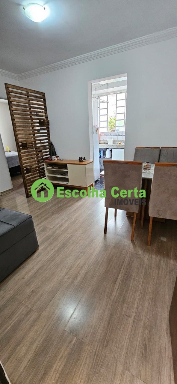 Todo reformado e no modelo porteira fechada com os seguintes móveis e eletrodomésticos inclusos: sofá, mesa com cadeiras, cama, cômoda, geladeira, cook top, armários da cozinha. Apartamento de 2 quartos, sala com piso em laminado de madeira, cozinha com bancada em granito e armários, área de serviço, vaga de estacionamento.