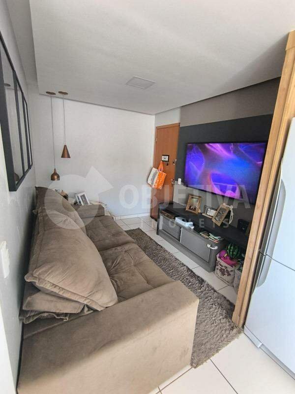 Apartamento à venda no bairro Minas Gerais, em Uberlândia, com 51 m², composto por 2 quartos, sendo 1 suíte, além de 1 banheiro social. A área de serviço é integrada à cozinha, que possui bancadas em granito, fogão cooktop, exaustor e móveis planejados em todos os ambientes. O imóvel conta com box nos banheiros, sanca invertida com iluminação, sacada com canto alemão e cortinas blackout na sacada e nos quartos. Dispõe de 1 vaga de garagem coberta.