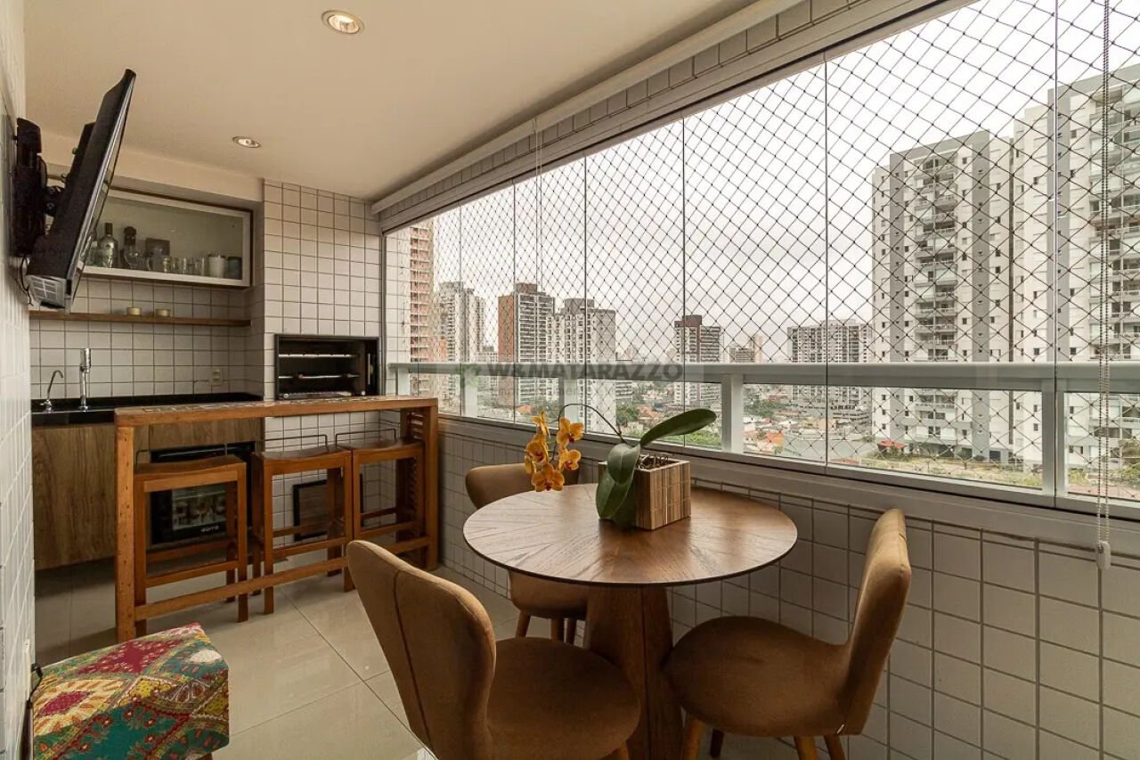 Em região privilegiada, com farta oferta de serviços como restaurantes, ótimas padarias, postos de combustível, mercados, farmácias, academia, e escolas, esta combinação de infraestrutura e localização torna o condomínio uma excelente escolha para quem busca conforto, segurança e qualidade de vida. Apresentamos aqui este apartamento que é uma combinação equilibrada entre sofisticação e funcionalidade. Com uma área privativa de 136 m², incluindo um depósito adicional, o espaço é distribuído de forma inteligente. Os três quartos, todos suítes com ar-condicionado e piso em madeira, oferecem o máximo conforto, e o closet na suíte master é um diferencial. Os banheiros das suítes são amplos e equipados com espelhos e box blindex, garantindo praticidade e elegância. O escritório, que pode ser revertido para quarto de serviço, é excelente para trabalho ou estudo, com duas posições dedicadas. O Living ampliado para dois ambientes, estar e jantar, com ar-condicionado e lavabo, oferece um espaço acolhedor para receber amigos e familiares. A varanda gourmet equipada com churrasqueira é o lugar perfeito para desfrutar de momentos agradáveis. A cozinha com planejados modernos e triturador na pia é bastante prática e funcional. A lavanderia é espaçosa e a dependência de serviço, transformada em despensa, oferece um espaço adicional para armazenamento e organização. A automação de iluminação e a proteção acústica na sala são características que elevam o conforto do apartamento. O aquecedor e o purificador de água complementam o pacote de conveniências, tornando este apartamento uma excelente escolha para quem valoriza conforto e praticidade. As duas vagas de garagem no subsolo oferecem um nível adicional de conveniência para os moradores, permitindo acesso fácil e seguro aos seus veículos. O condomínio oferece lazer completo como academia, quadra poliesportiva, spa, sauna, sala de massagem, ducha, piscina coberta aquecida com raia, piscina externa adulto e infantil, salão de festas, salão gourmet, churrasqueira, forno de pizza, brinquedoteca, playground, lan house e jogos adolescentes, home theater, bicicletário, redário, jardim e portaria com segurança 24 horas.