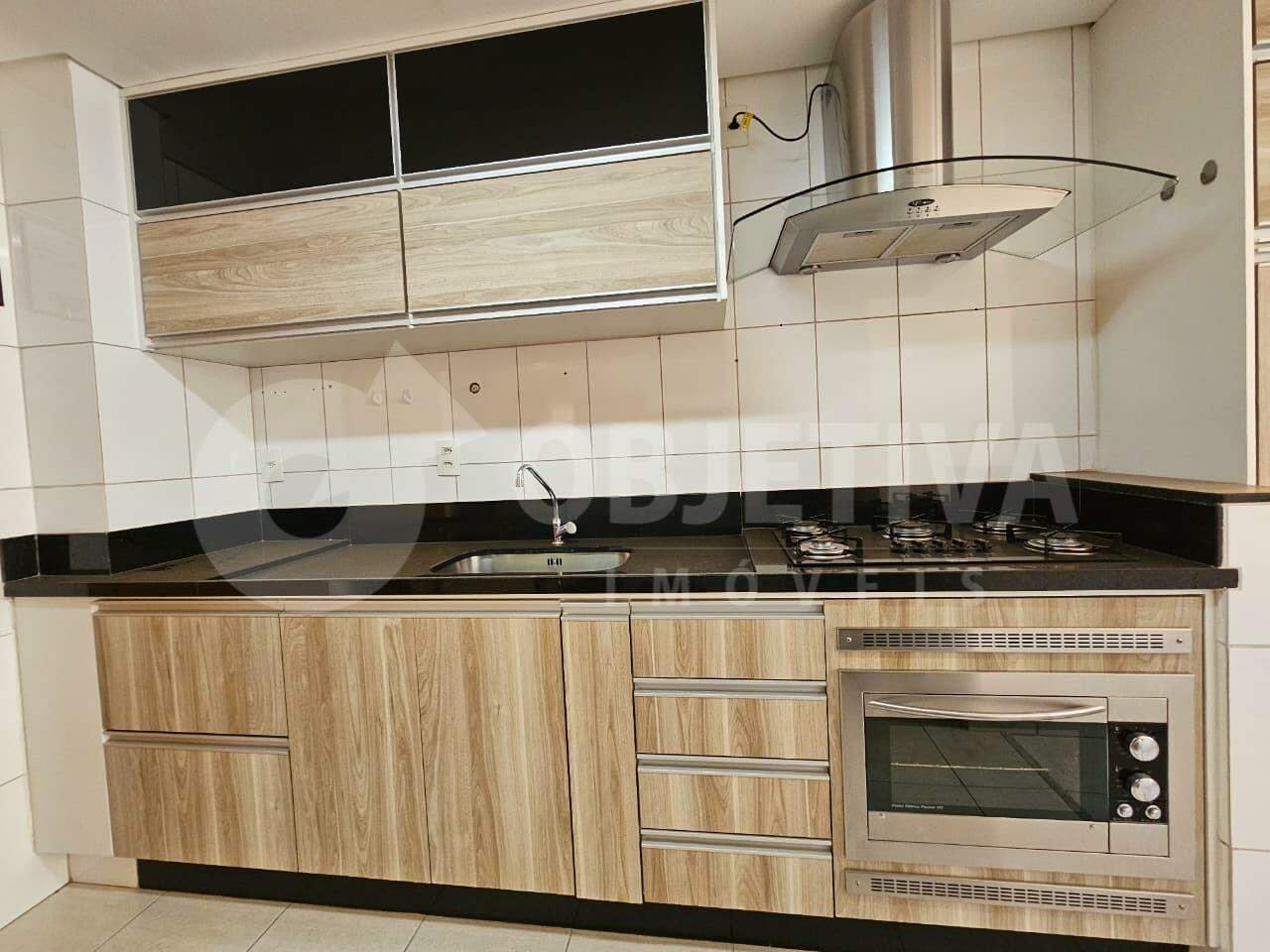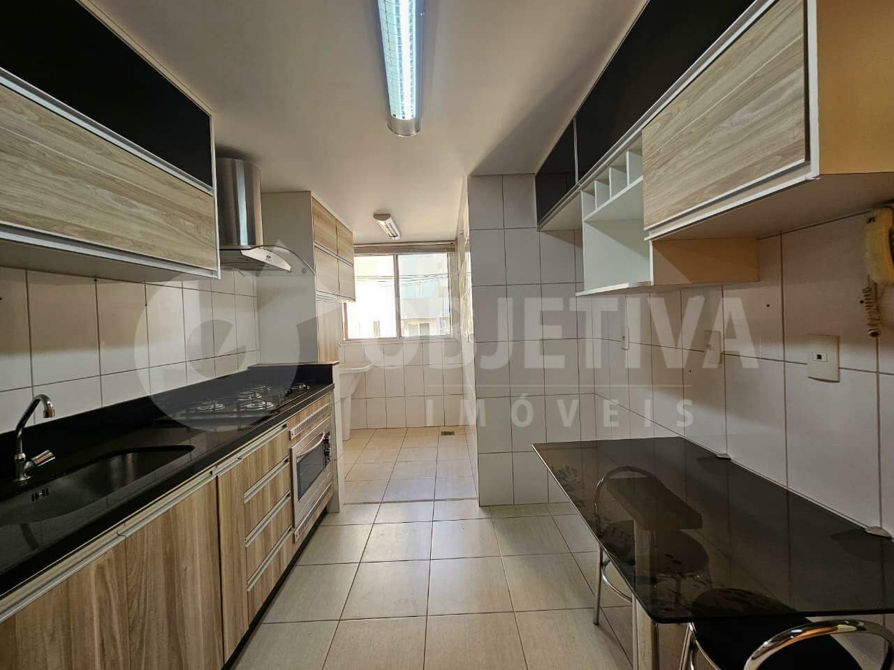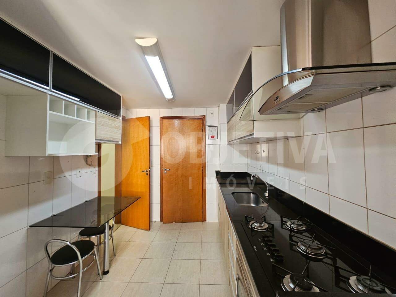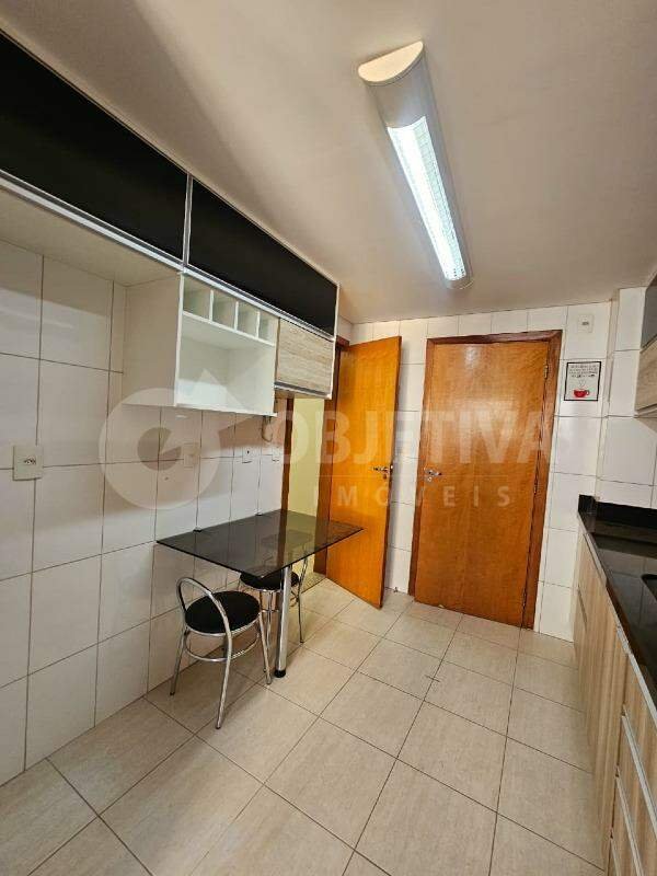 Apartamento com aproximadamente 90 m², localizado no bairro Copacabana, em Uberlândia, próximo ao Praia Clube, possui sala em dois ambientes com painel e sacada, cozinha equipada com armários, cooktop, forno elétrico, coifa e área de serviço, três quartos com armários, sendo uma suíte e um dos quartos com ar-condicionado, além de banheiro social e duas vagas de garagem. O condomínio oferece elevador, portaria 24 horas, salão de festa e vigia.
