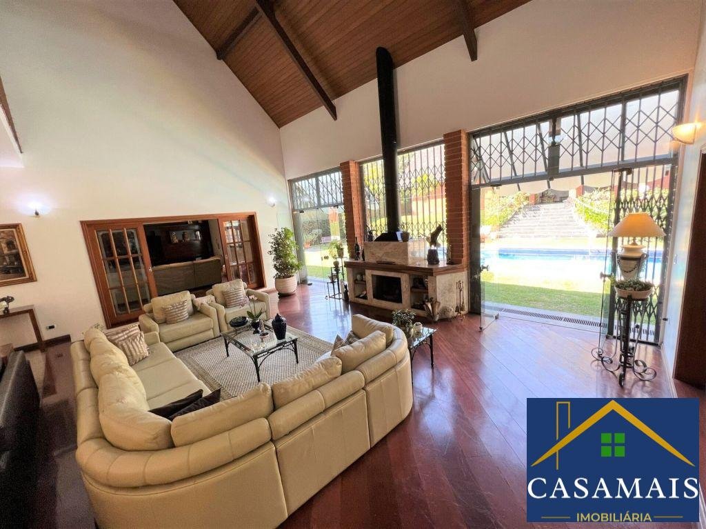 No final da rua, logo na entrada, impressiona com jardins muito bem cuidados e a construção sólida e contemporânea. Em condomínio referência na região, com fácil acesso pela Raposo Tavares sentido SP, a poucos metros do Parque Cemucam, shopping, escolas, SESC, restaurantes e toda sorte de serviços e produtos. A divisão que privilegia o contato com a natureza exuberante é um dos itens que encanta. Hall de entrada, salas de estar, escritório, lareira, lavabos, jardim com lago de carpas serpenteando o acesso, deixa tudo mais claro, com iluminação natural, por conta de grandes panos e portas de vidro. A cozinha com ilha é totalmente planejada, com sala de almoço, espaço para café, lavanderia anexa, 2 dormitórios e banheiro de serviço, com saída estratégica. No piso superior, a ala íntima, com family room, roupeiros e escritório, contempla 4 suítes, sendo 2 com hidro e a master além da hidro com closet. Com acesso à área de lazer, com piscina aquecida e hidro, bar molhado, e salão de festas e jogos, com bar e cozinha gourmet, todos cobertos, com várias áreas de descanso e social. Banheiros de apoio e os jardins com orquidário e pomar. Local perfeito para receber familiares e amigos. Garagem coberta para 6 carros, mas com capacidade para 14. Vale a pena a experiência, traga quem busca privacidade, segurança e bom gosto! Estuda-se permuta por imóvel na região térrea e menor até 40%. Documentação pronta para financiamento.