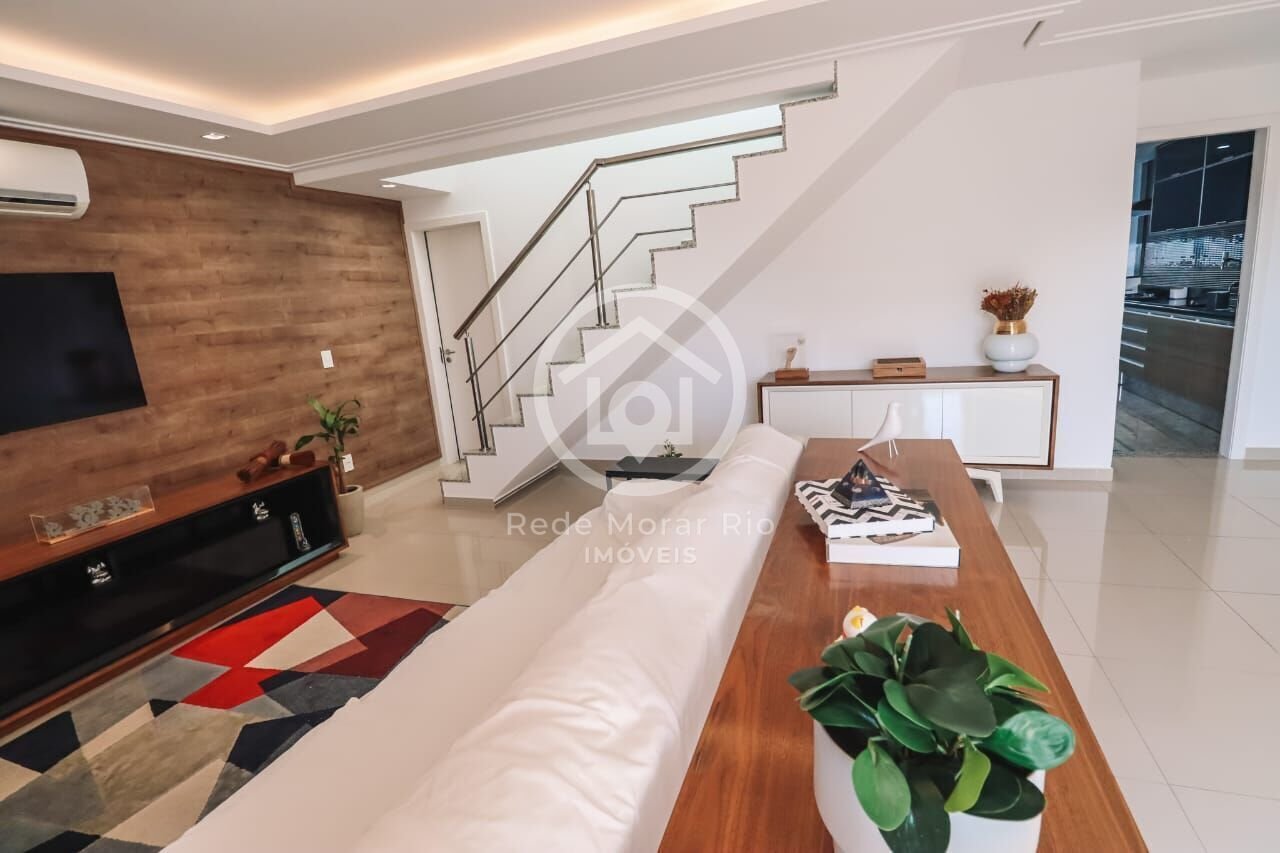Maravilhosa cobertura duplex com alto padrão de acabamento em localização privilegiada na Gleba B no Recreio dos Bandeirantes. São 304m² com sala em 2 ambientes, linda varanda, 3 ótimas suítes, 6 banheiros, cozinha planejada com área de serviço e dependência completa. Área externa com piscina e espaço gourmet. Ar condicionado Split. 3 vagas de garagem. Prédio com elevador e lazer completo.