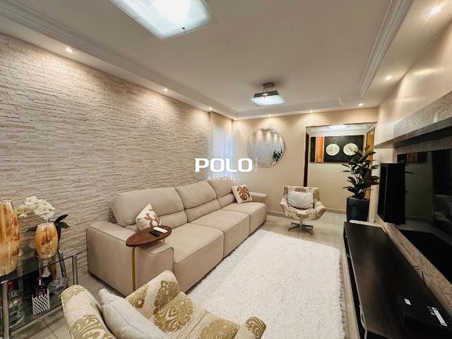 Apartamento mobiliado para alugar no Residencial Ipanema IV, Setor Bueno. Com 145 m², possui 3 quartos, sendo 1 suíte, todos com armários e ar-condicionado. Sala ampla integrada à sala de jantar, sacada, cozinha repleta de armários, equipada com fogão, forno, micro-ondas, lava-louças e geladeira. Área de serviço com máquina lava e seca e dependência de empregada com banheiro.
