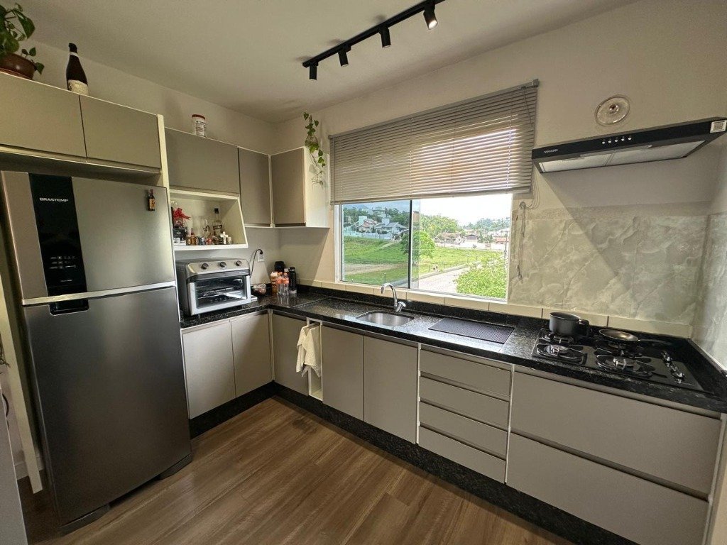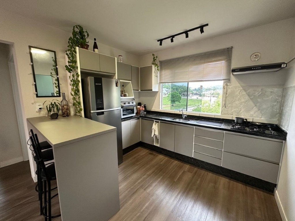Apartamento contendo 2 dormitórios, sala e cozinha planejada. Fica com móveis sob medida e ar condicionado. Próximo ao Centro de Timbó. Venha se encantar com este lindo apartamento.