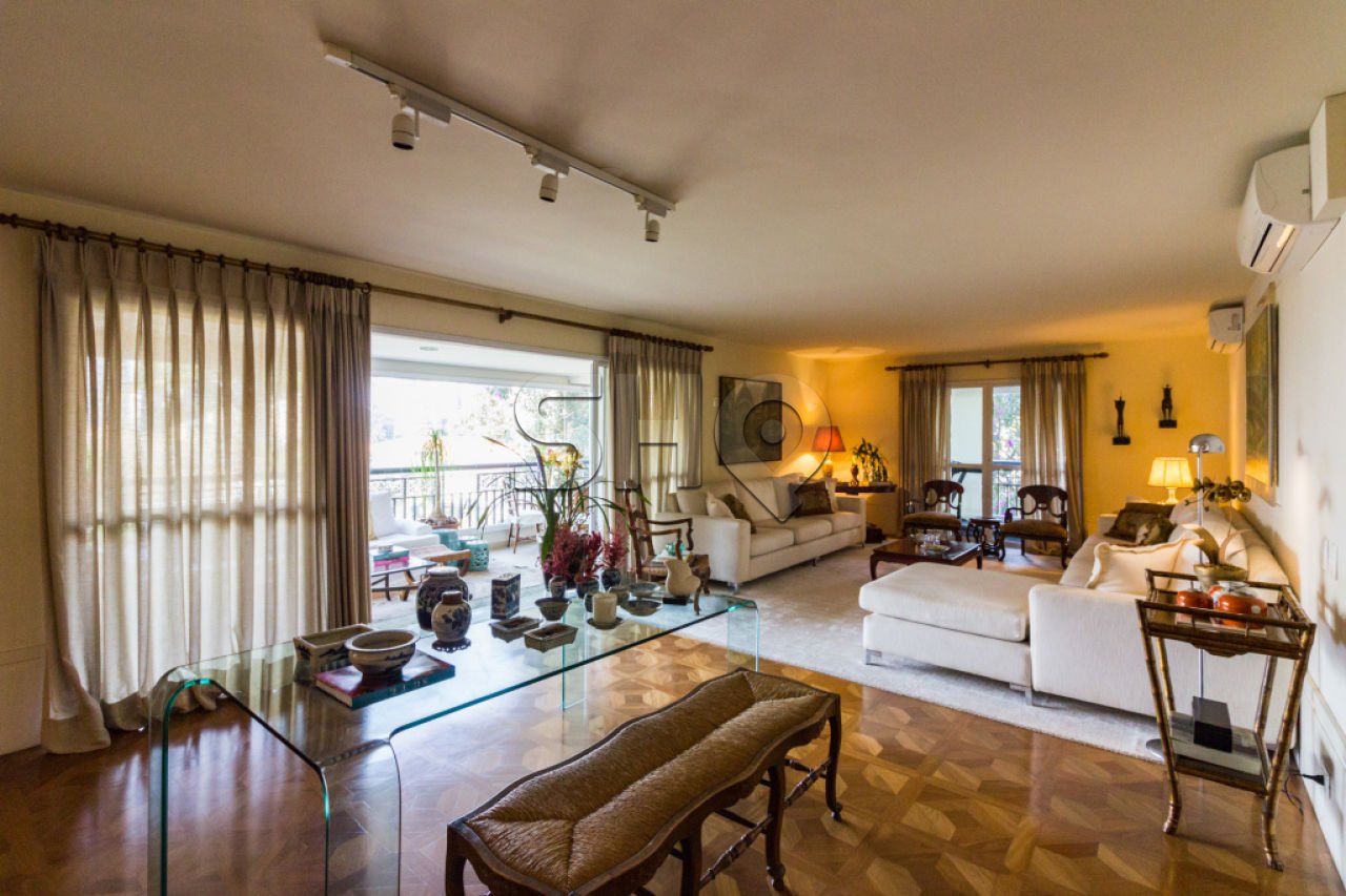 Apartamento em Pacaembu com 3 dormitórios, sendo 3 suítes. Há na unidade sala de estar, sala de jantar, living para 2 ambientes, ar condicionado, varanda, cozinha independente, área de serviço, piso de madeira e banheira. O condomínio possui brinquedoteca, playground, área verde e 5 vagas de estacionamento. Localizado próximo a estação Marechal Deodoro, colégio e shopping Pátio Higienópolis.