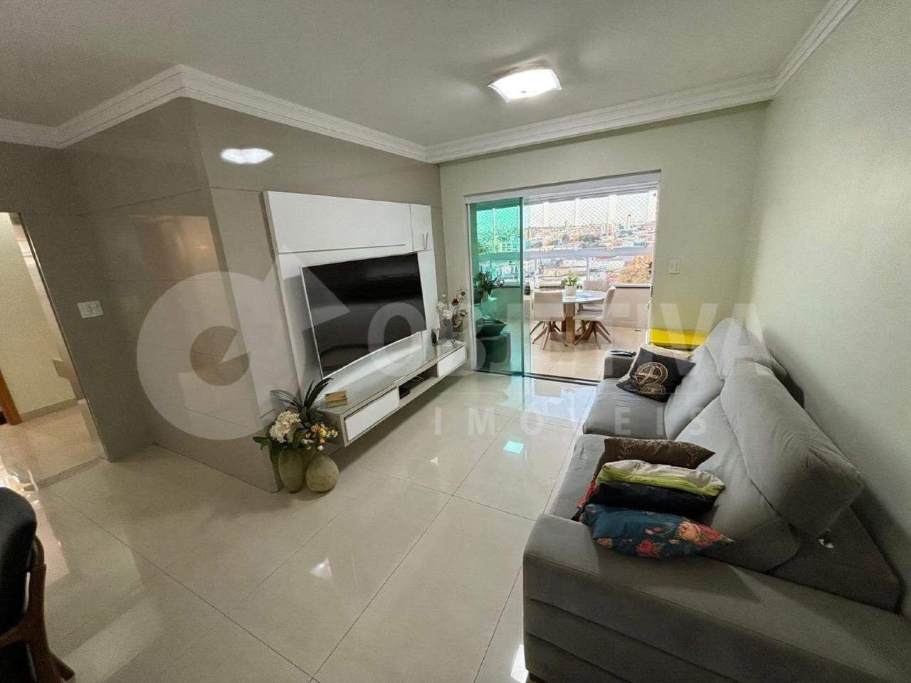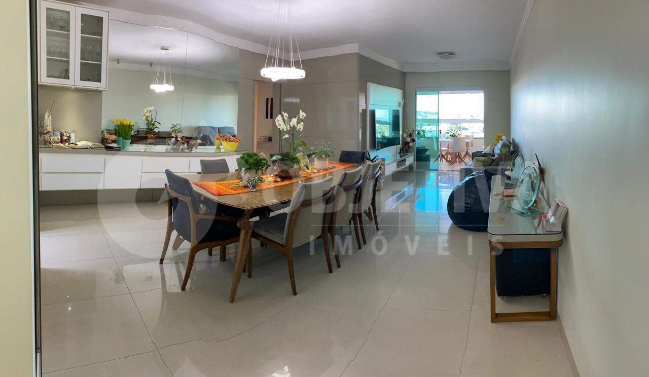 Apartamento disponível para venda no bairro Nossa Senhora Aparecida, em Uberlândia. São 137 m² de área privativa, distribuídos em três quartos, sendo duas suítes, sala de TV com painel, sala de estar, cozinha com pia, bancada em granito e armários, lavanderia com armários, sacada com churrasqueira, banheiro social com box, lavabo e duas vagas de garagem cobertas. O apartamento está em excelente estado, com piso em porcelanato e pintura recente. O condomínio oferece salão de festas, dois elevadores, academia completa, área gourmet, piscina aquecida e portaria 24 horas.