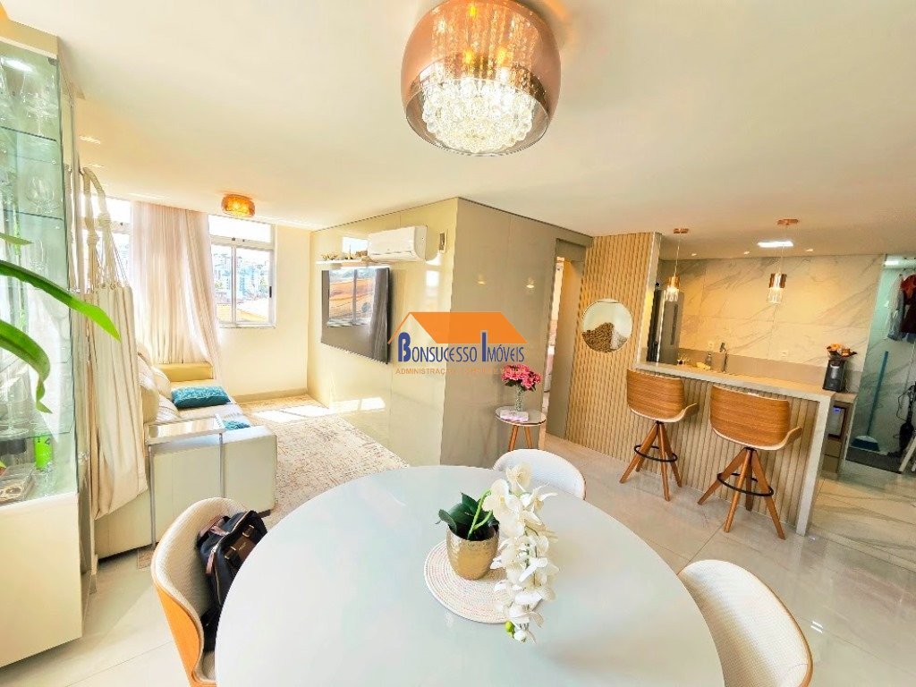 Apartamento de 2 quartos, bairro Renascença com: Lindo apartamento com sala 2 ambientes em porcelanato, painel na parede, teto rebaixado em gesso, iluminação indireta, 02 (dois) quartos em porcelanato, um com armário (um dos quartos foi quebrado e ampliado a sala, mais fácil reverter), banheiro com bancada em granito, armário e box blindex, escritório, cozinha estilo americana com bancada em granito, armários e piso porcelanato, área de serviço separada com armários e bancada em granito. 01 vaga descoberta. Prédio de 3 andares (2 lances de escada) - melhor local do bairro.