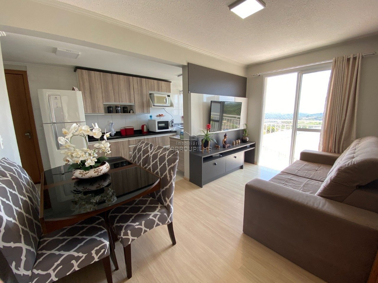 APARTAMENTO !!! Com dois dormitórios, sala e cozinha integradas, sacada, banheiro social, área de serviço e vaga de estacionamento. Ficam os móveis do banheiro e painel da sala. Condomínio conta com salão de festas, churrasqueira coletiva, playground, pergolado, câmeras de segurança e guarita. Os imóveis publicados devem ser previamente consultados pois estão sujeitos a disponibilidade e alteração de valor sem aviso prévio.