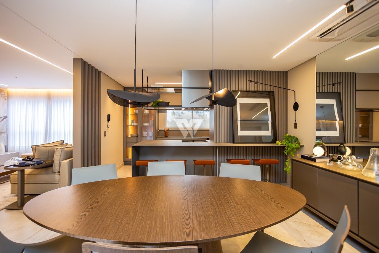 Localizado na Rua Vieira dos Santos, em uma das regiões mais desejadas de Curitiba, a poucos minutos do Museu do Olho, Bosque do Papa e Shopping Mueller, o Edifício Dasos oferece exclusividade, design e conforto em cada detalhe. Este apartamento mobiliado e decorado possui 160 m² privativos e foi projetado pela arquiteta Viviane Loyola, com um conceito contemporâneo, acabamentos de alto padrão e espaços amplos que integram elegância e funcionalidade. Diferenciais Principais: - 3 suítes, incluindo suíte master com closet e banheiro espaçoso - Projeto de interiores assinado e mobiliário planejado - Churrasqueira a carvão na sacada - Piso aquecido nos banheiros e piso em madeira - Iluminação com luminárias assinadas - Revestimentos e pedras nobres - 4 vagas de garagem, sendo 1 com infraestrutura para carregador de veículo elétrico - Infraestrutura completa para ar-condicionado em todos os ambientes - Esquadrias e vidros laminados - Áreas comuns equipadas e decoradas: salão de festas, piscina, espaço fitness, playground e área pet Agende sua visita e descubra de perto todos os detalhes que fazem deste apartamento uma verdadeira expressão de sofisticação e conforto urbano.