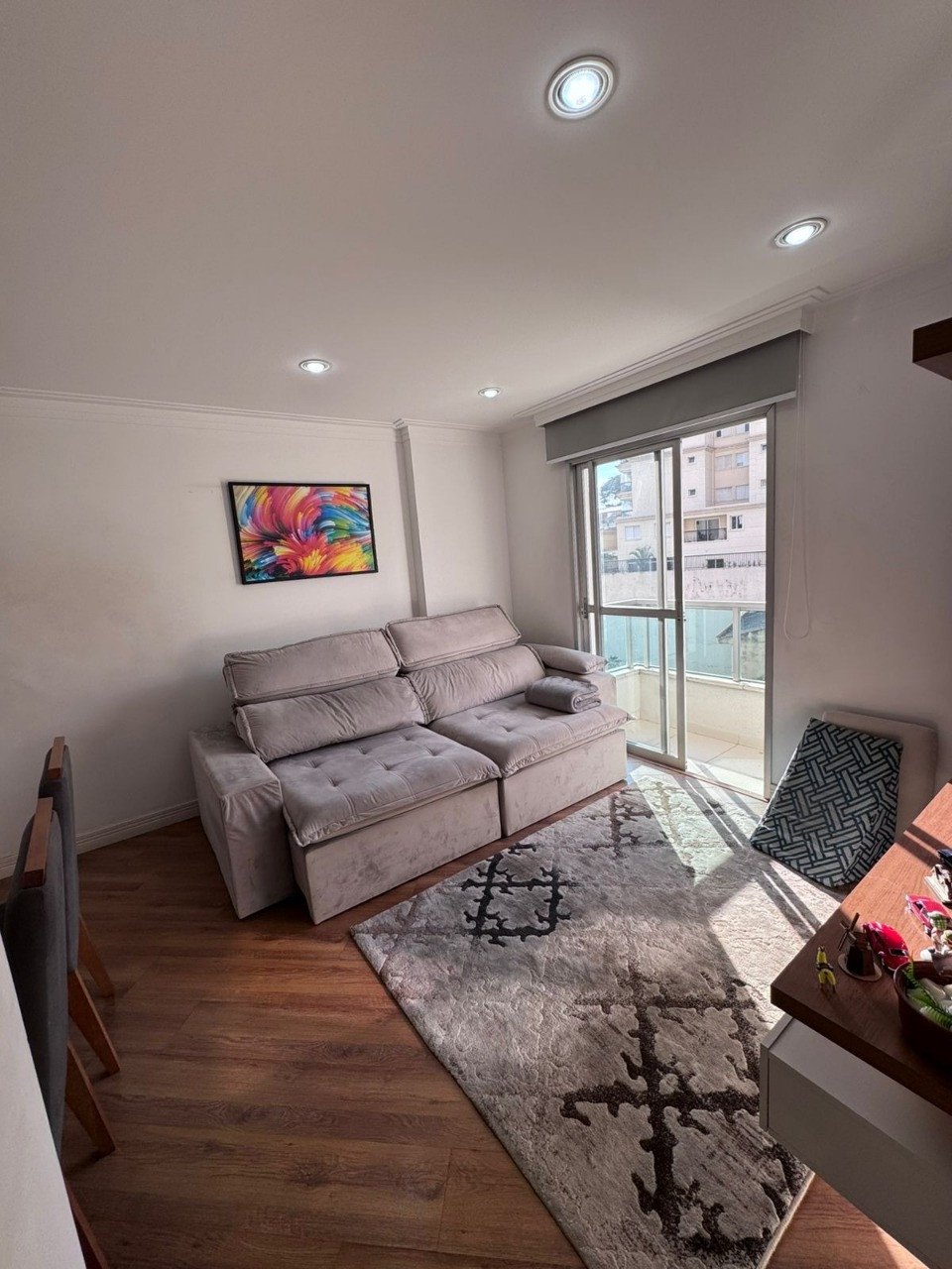 Apartamento de 55m², com 02 dormitórios, sala para 02 ambientes com mesa com 4 cadeiras, sofá, hack, 1 tapete, 2 passadeiras e 1 quadro, 2 sacadas, cozinha planejada com fogão cooktop, exaustor e 3 banquetas, 01 banheiro, varanda na sala e no dormitório, 01 vaga de garagem individual e ampla. Condomínio com portaria 24 horas e salão de festas amplo. Documentação toda OK. Será retirado geladeira, máquina de lavar, televisão, micro-ondas e cama.