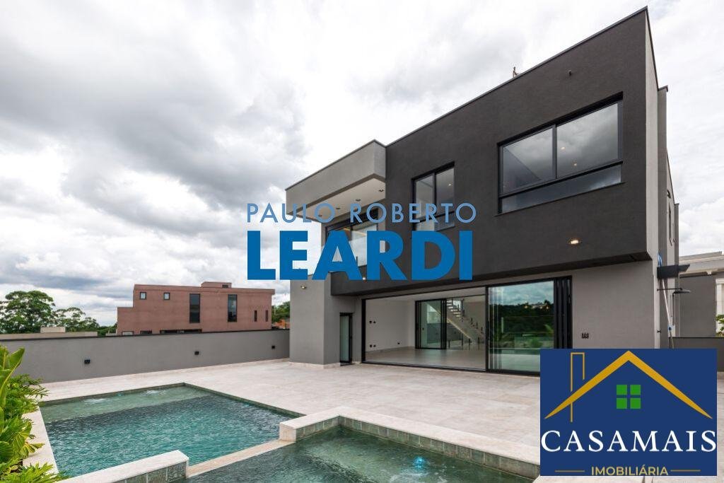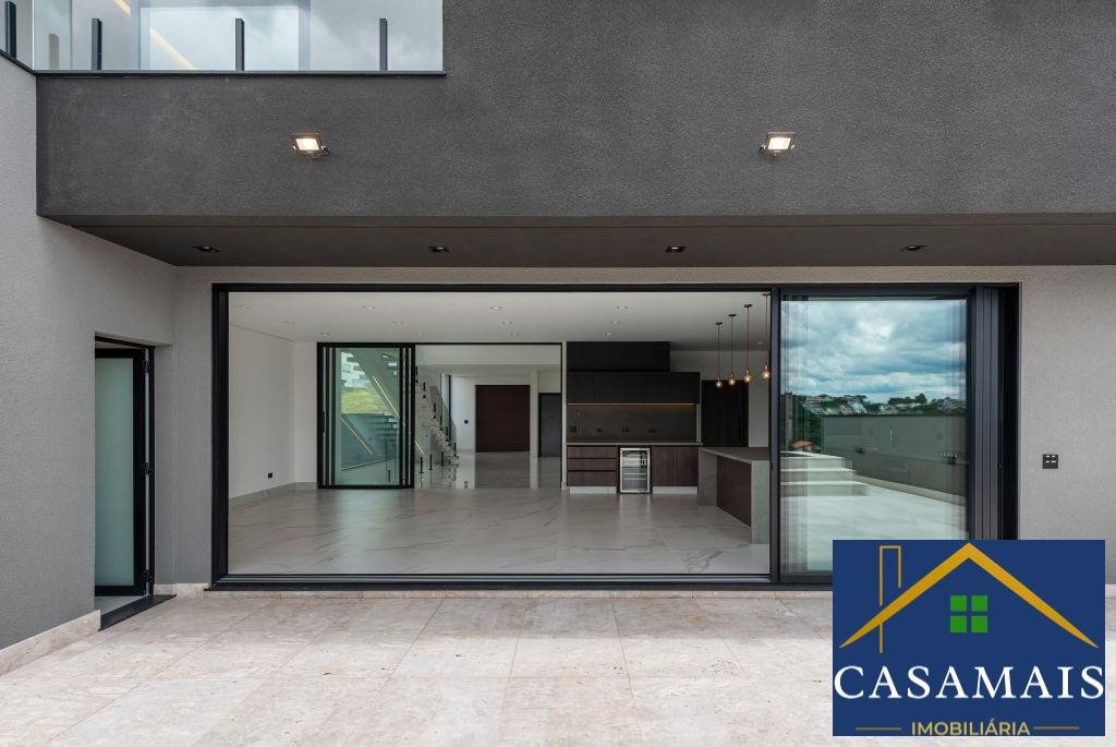 Luxuosa Casa Moderna à Venda no Condomínio Oportunidade única! Desfrute do requinte e conforto em uma casa moderna e impecável, com porteira fechada, em um prestigiado condomínio. Esta propriedade oferece vistas deslumbrantes para uma área verde preservada, proporcionando um ambiente de tranquilidade e bem-estar. Detalhes do Imóvel: Área do terreno: 423m² Área construída: 486m² 4 suítes espaçosas: Todas com móveis planejados e ar condicionado split. A suíte master possui ducha dupla e banheira de hidromassagem. 7 banheiros: Acabamentos de alta qualidade. Home theater: Equipado com sofá planejado para suas sessões de cinema em casa. Escritório: Perfeito para o trabalho remoto, com móveis planejados. Porta principal: Imponente porta em alumínio corten pivotante com fechadura eletrônica. Living: Ambiente com pé direito duplo, sofá orgânico e poltronas, ideal para receber amigos e familiares. Esquadrias: Portas e janelas em alumínio preto com persianas automáticas motorizadas e cortinas. Área gourmet integrada: Completa com móveis planejados, mesa de jantar em resina + 6 cadeiras, eletrodomésticos e despensa ampla com prateleiras. Churrasqueira a carvão: Para os amantes de um bom churrasco. Coifa de exaustão elétrica integrada: Modernidade e praticidade. Aquecimento solar: Sistema com capacidade de 1.000 litros. Piscina: Com SPA e prainha, pronta para receber aquecimento. Garagem: Espaço para 5 carros, com portão automático e tomada para carros elétricos. Suíte para funcionário e área de serviços: No subsolo, para maior comodidade. Informações Adicionais: IPTU: R$ 750,00 Condomínio: R$ 845,00 Valor: R$ 4.850.000,00 O condomínio é conhecido por sua infraestrutura completa, segurança 24 horas e áreas de lazer, proporcionando uma excelente qualidade de vida para seus moradores. Não perca esta oportunidade de viver em um verdadeiro paraíso! Entre em contato para agendar uma visita.