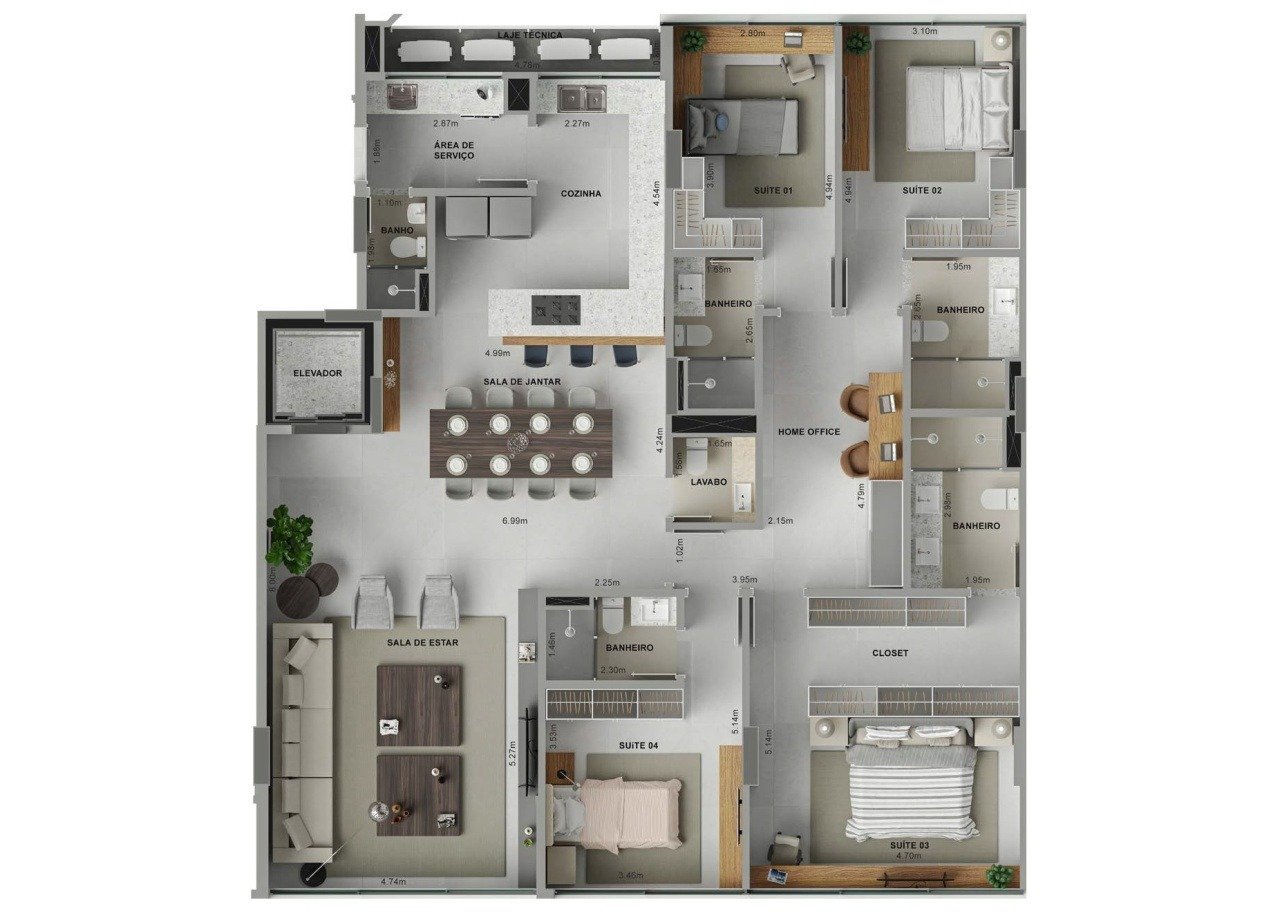 4 suítes