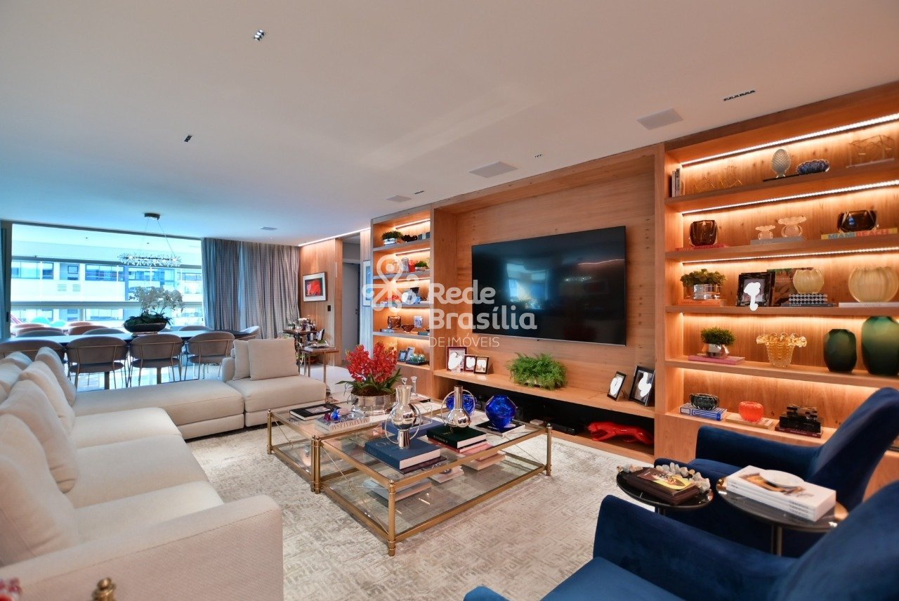 Apartamento Reformado Noroeste - 3 Suítes (1 Master com Closet e Escritório) - 303m² - Lazer Completo Localizado em um dos prédios mais sofisticados do Noroeste, com hall social privativo e lazer completo, este apartamento foi inteiramente reformado. São 303m² muito bem distribuídos em 3 suítes, a master com closet generoso, banheiro espaçoso com duas cubas e duchas, bancada com penteadeira, além de um escritório exclusivo. Ambientes amplos e integrados, sala de estar e jantar, varanda gourmet com churrasqueira integrada à área social, perfeita para receber. Cozinha funcional com copa, louceiro, lavanderia, despensa e DCE. Acabamento de altíssimo padrão e marcenaria sob medida em todos os ambientes. O imóvel conta ainda com 5 vagas soltas de garagem. O prédio oferece lazer completo: academia moderna, salão de festas, piscina e brinquedoteca. Para quem busca sofisticação, conforto e localização privilegiada. Valores: Aluguel: R$ 35.000 (sem mobília) | R$ 45.000 (com mobília) Destaques do imóvel: 303m² | 3 Suítes (Master com Closet e Escritório) | Varanda Gourmet com Churrasqueira | Sala Ampla Integrada | Cozinha Completa com Copa e Louceiro | DCE | 5 Vagas Soltas | Acabamento de Alto Padrão | Prédio com Lazer Completo (Academia, Piscina, Salão de Festas, Brinquedoteca) | Hall Social Privativo | Localização Noroeste