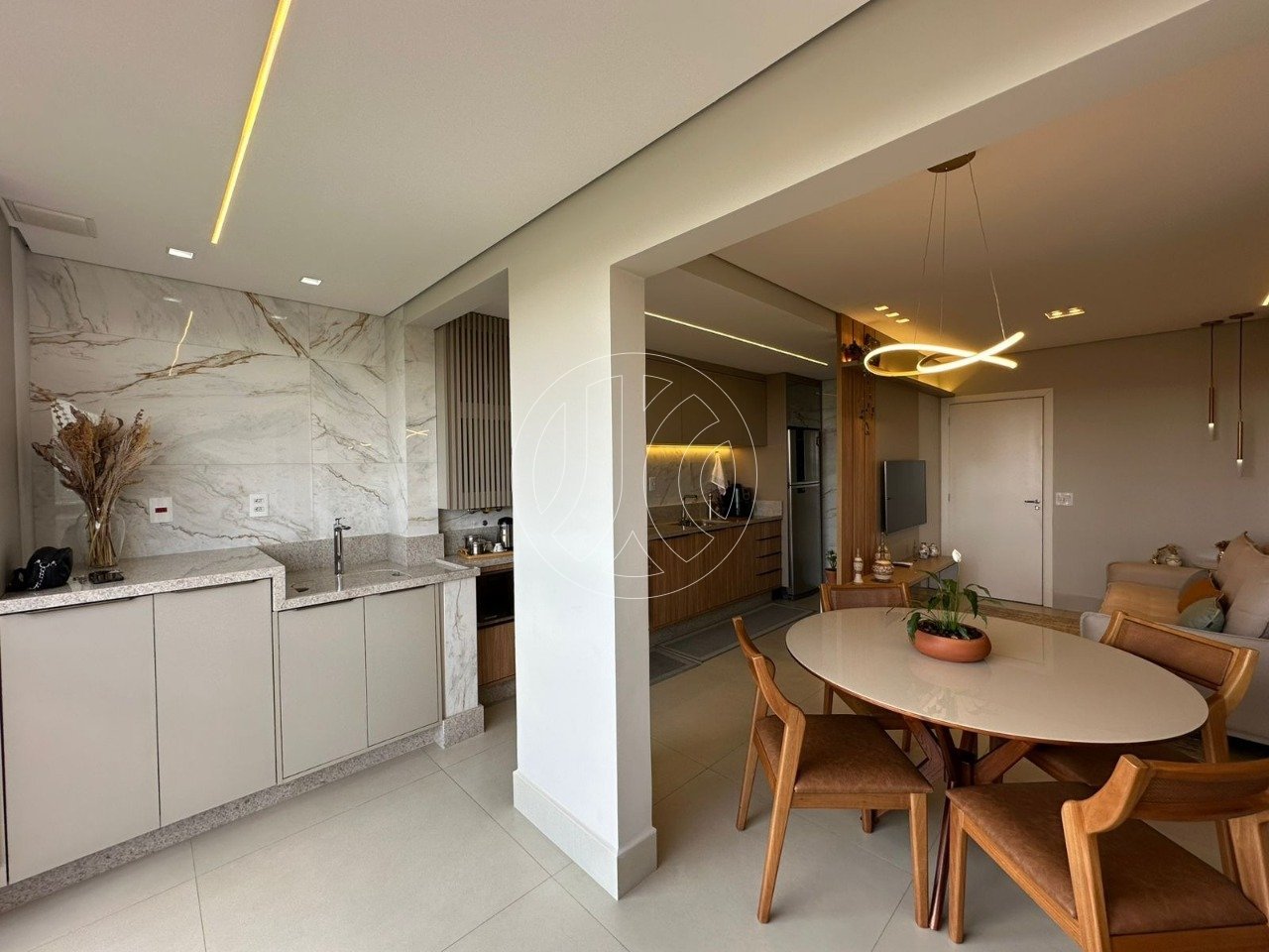 2 dormitórios sendo 1 suíte Sala de TV e jantar totalmente integradas Cozinha Varanda integrada Móveis planejados em todos os cômodos.