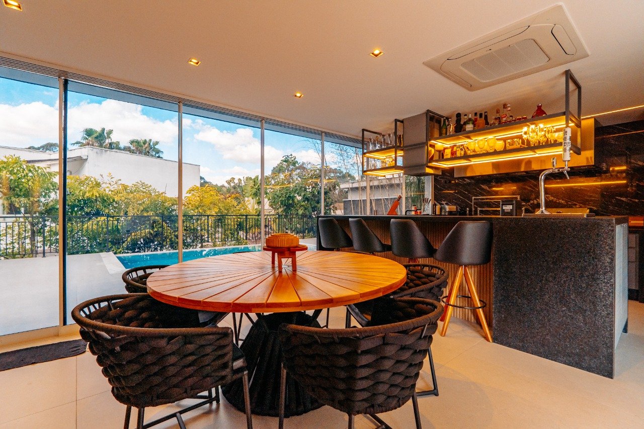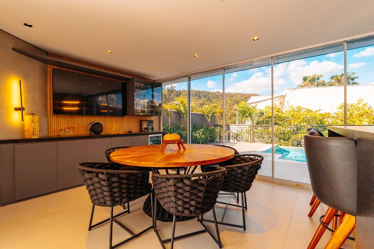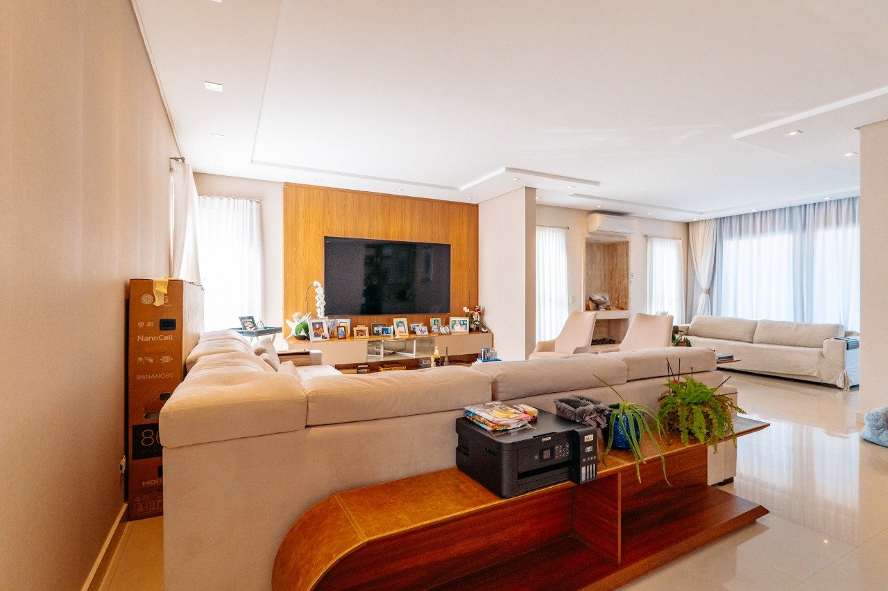 Área Privativa: 480 m² Área Total: 420 m² 4 Suítes, sendo a master com closet e hidromassagem 7 Banheiros 4 Vagas Amplo living com estar, jantar e lareira Cozinha completa com armários Espaço gourmet totalmente equipado Piscina privativa Lareira Espaço Gourmet