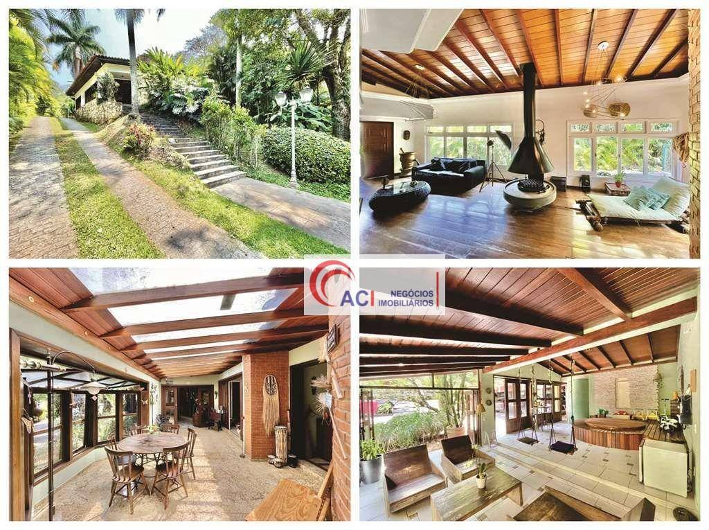 LINDA CASA ÚNICA NO RESIDENCE PARK! VENHA CONHECER! DIFERENCIADA DOS PADRÕES DO CONDOMÍNIO: PELO PROJETO ARQUITETÔNICO EXCLUSIVO, PELO SEU TAMANHO MAIOR, POR SER 90% TÉRREA, TER 6 SUÍTES E PRIVACIDADE TOTAL. No centro do condomínio, em um final de rua tranquila sem saída, em meio a muita natureza e com 3 palmeiras no jardim. Imóvel repleto de armários. Portas e janelas em madeira e vidro, com persianas e telas nos quartos. Pisos e tábuas largas, cerâmica, granito com molduras em madeira, porcelanato e Miracema. 4 acessos: social, garagem, lazer e serviço. Porta social dupla em madeira. Casa avarandada, bem arejada, envidraçada e iluminada. Living integrado para 6 ambientes, com lavabo. Estar, Lareira central redonda, Bar com armário, pia e balcão, jantar, sala de almoço e home theater com armários mais reservada. Copa cozinha planejada com bancada, 2 cubas inox, balcão e despensa. 6 SUÍTES NO TOTAL com armários e a master com closet. 5 SUÍTES - TÉRREO. 1 SUÍTE E ESCRITÓRIO - PISO SUPERIOR com ar-condicionado e 2 acessos: pelo hall íntimo - escada de madeira e pela área de serviço - escada caracol. Banheiros com tampos em mármore, espelhos, gabinetes, bidê e box de vidro, sendo a master jardinzinho e hidro. SPA - No corpo da casa: Deck com Ofurô redondo para 8 pessoas. Sauna úmida para 6 pessoas. Ducha circular. Vestiário. Salão de festas com anexo gourmet: churrasqueira, forno de pizza e espaço com coifa, já preparado para forno e fogão a lenha. Área de serviço aberta ensolarada, lavanderia fechada com tanque, quarto e banheiro de serviço. Oficina. Garagem para 14 vagas, sendo 4 cobertas + um grande pát