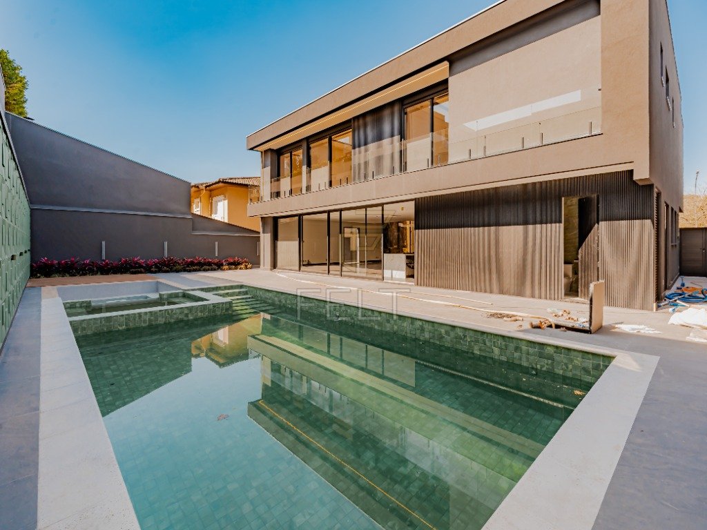 Linda casa para venda no condomínio Terreno 600m² Área construída 574m² 4 suítes Suite Master. Com walking closet Louças e Metais Piscina Hidro Fire place 7 banheiros Pisos e Revestimentos: Coverland/ Lantec/ Laminatto Automatização, exceto ar Placa Fotovoltaica Aquecimento Piscina Aquecimento solar toda casa Ar condicionado toda casa. Pé Direito Duplo ar dutado