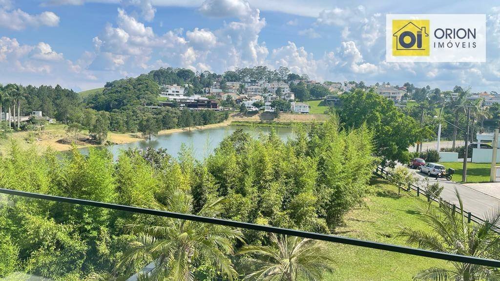 Sobrado novo de esquina com vista permanente para o lago interno do Residencial. Com 4 suítes, closet; sala com pé direito duplo, em 3 ambientes e varanda, lavabo; lareira; cozinha planejada, área de serviço e dependências de empregada; área gourmet com churrasqueira e piscina; garagem coberta para 3 veículos.