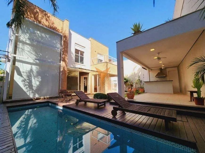 Ao adentrar esta residência, você será recebido por um terreno amplo e bem distribuído, com 11 metros de frente, 35 metros em cada lado e 15,72 metros nos fundos. Com uma área construída de 422,53 m², a casa oferece espaços generosos e confortáveis, perfeitos para acomodar toda a família com tranquilidade e estilo. Uma das grandes vantagens desta propriedade é a sua localização privilegiada, situada próxima à portaria do condomínio e a uma charmosa pista de caminhada, ideal para momentos de lazer e exercício ao ar livre. O projeto arquitetônico foi elaborado de maneira inteligente, concentrando os ambientes sociais no mesmo nível, promovendo uma integração harmoniosa entre eles. Assim, a sala de TV, sala de lareira, sala de estar, sala de jantar, copa/cozinha espaçosa, área de churrasco e piscina estão todas interligadas, criando um espaço ideal para convivência e entretenimento. A casa é acessada por duas entradas independentes. A entrada principal, destacada por uma porta de vidro deslumbrante e um espelho d'água elegante, acolhe os visitantes com um toque de sofisticação. Já a entrada de serviço, localizada no lado esquerdo da casa, oferece praticidade para o dia a dia. A garagem coberta, estrategicamente posicionada próxima à área de serviço e à cozinha, facilita a rotina dos moradores, proporcionando conforto e conveniência. Esta propriedade conta com diversos diferenciais que a tornam única. A lareira a gás, com acendimento eletrônico, adiciona um toque de aconchego e modernidade aos dias mais frios. A piscina e o espelho d'água são iluminados por LEDs, permitindo criar diferentes atmosferas, de acordo com o momento e a ocasião. A sala envidraçada, com seu pé-direito duplo e cortinas com acionamento elétrico, garante uma sensação de amplitude e luminosidade, trazendo a beleza do exterior para o interior da casa. O conforto térmico foi cuidadosamente planejado. Todos os dormitórios e salas de estar estão equipados com ar-condicionado de 18.000 BTUs, assegurando uma temperatura agradável em qualquer época do ano. Para complementar, a casa dispõe de um sistema de aquecimento eficiente, com dois aquecedores a gás instalados na cobertura, juntamente com um pressurizador, garantindo água quente e conforto em todos os ambientes. Em resumo, esta residência