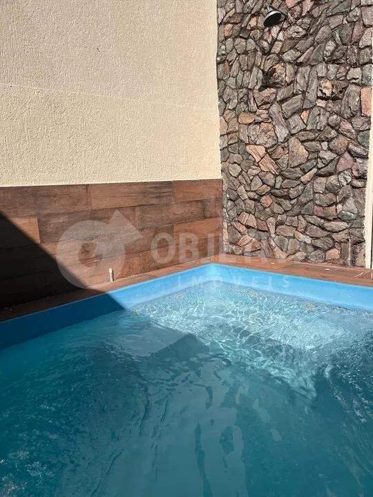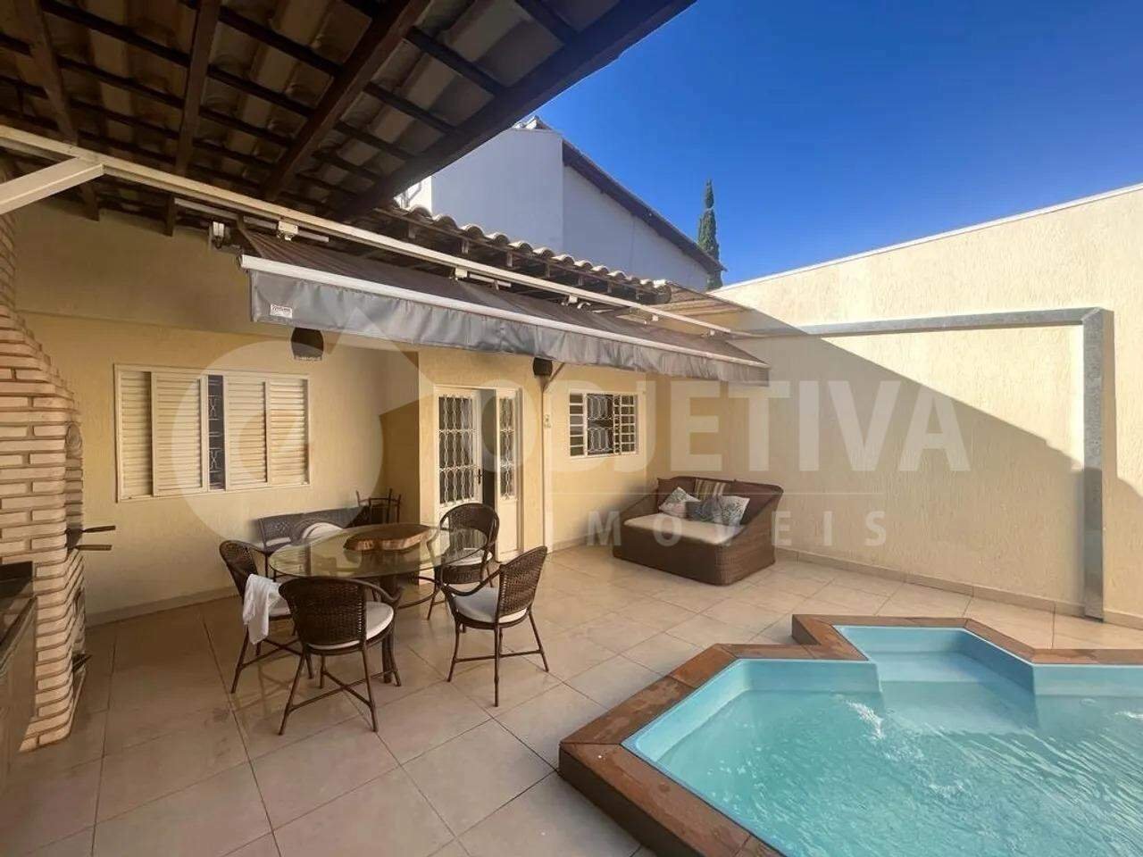 Casa disponível para a venda no bairro Residencial Gramado em Uberlândia. São 250m² de terreno e aproximadamente 187m² de área distribuída dispondo de 03 quartos sendo um suíte com banheira de hidromassagem e guarda roupa embutido, banheiro social, sala em três ambientes, cozinha com armários, pia, bancadas e ilha em mármore, área de serviço separada, lavabo social, varanda gourmet com churrasqueira a carvão e piscina aquecida com hidro. Despensa com armários. Garagem para 3 carros. Acabamento em gesso, piso porcelanato em toda a casa. Entre em contato, vamos te ajudar na negociação.