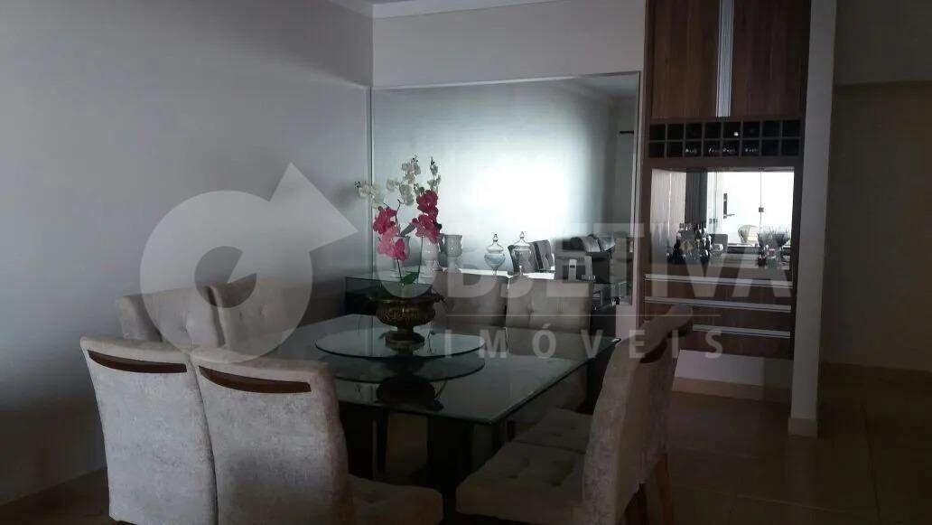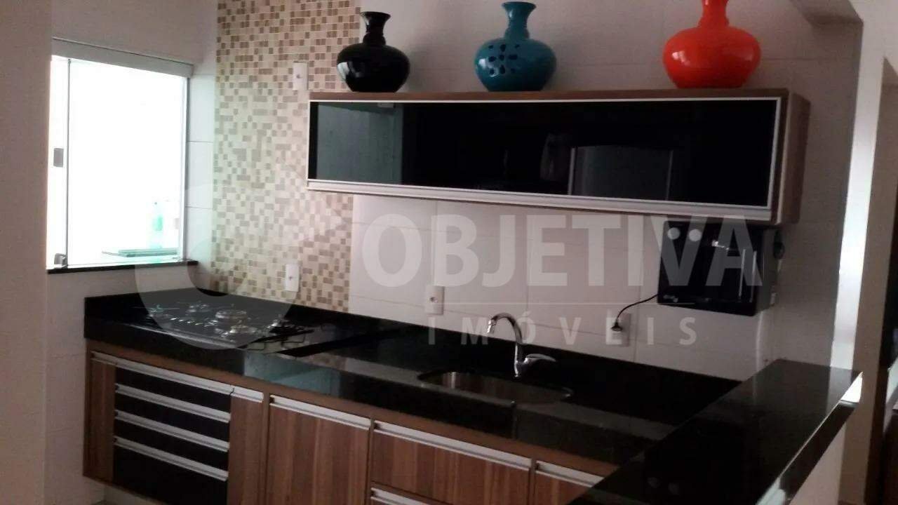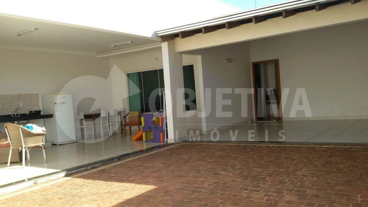 Excelente casa disponível para venda no bairro Nova Uberlândia, são 250m² de terreno e aproximadamente 164m² de área construída que dispõe de 3 quartos, sendo 2 deles com ar condicionado, 1 suíte com box e armário sob a pia, sala ampla em dois ambientes, banheiro social, varanda gourmet com churrasqueira, jardim de inverno e 2 vagas de garagem coberta. Piso em porcelanato e instalação para água quente. Ótima localização do bairro, proprietário aceita permuta por apartamento. Vamos te ajudar na negociação.