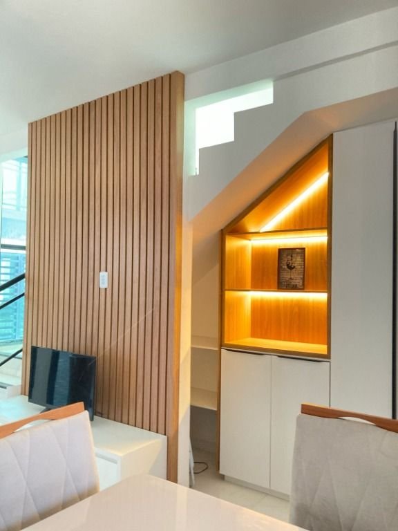 Área Privativa: 55,87m² (02 Quartos, sendo 01 Suíte) (Pavimento Térreo) -Sala de Estar e Jantar, -Cozinha Integrada, -Área de Serviço, -Banheiro Social, (Pavimento Superior) -Quarto, -Suíte Reversível, Vagas de Garagem: 01