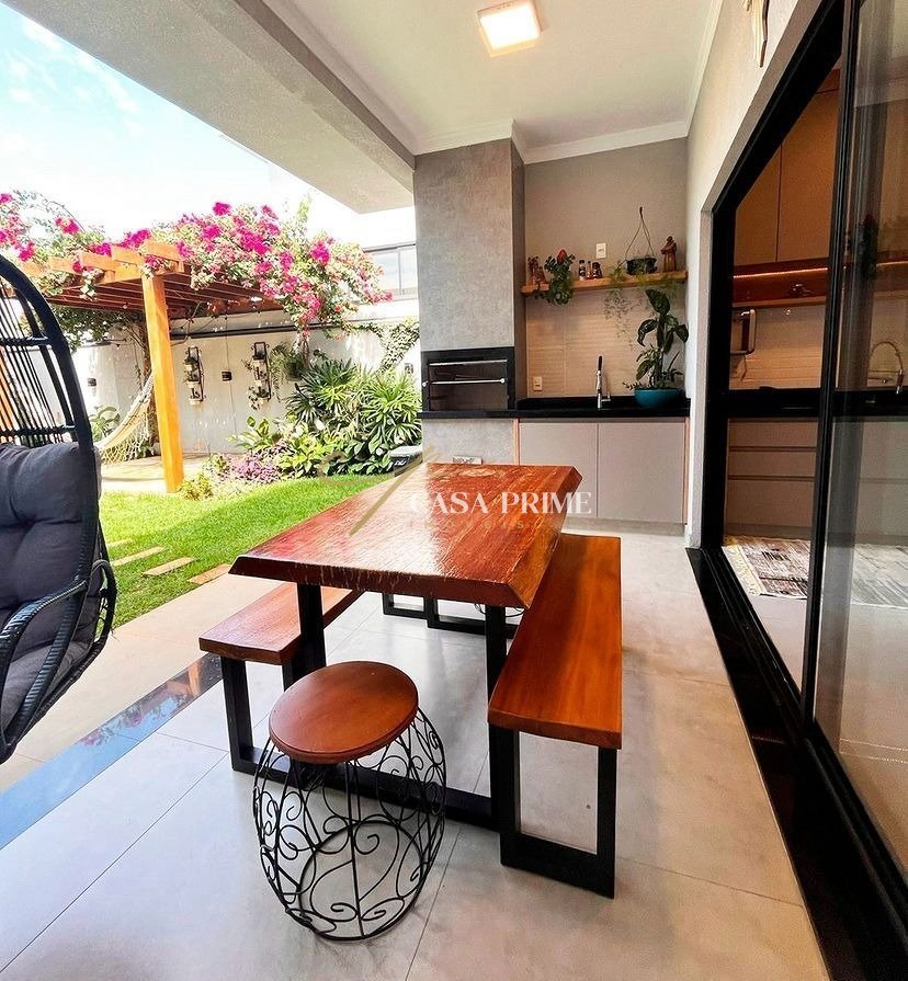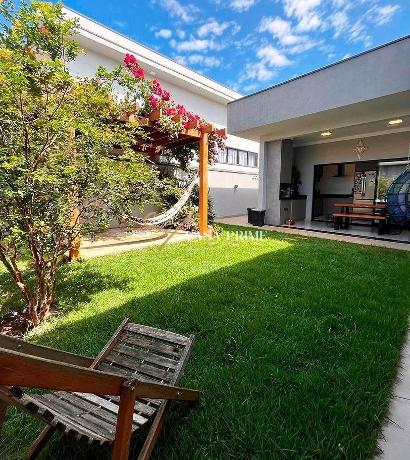 Essa residência é uma excelente escolha para quem busca conforto e exclusividade. Com três suítes, sendo duas com armários planejados e uma suíte master com closet e portas de vidro, a casa oferece privacidade e muito espaço para sua família. A sala de estar e jantar possui pé-direito alto e é integrada à cozinha, criando um ambiente amplo e convidativo, ideal para momentos especiais. A cozinha também conta com armários planejados, proporcionando sofisticação e funcionalidade. Externamente, um lindo jardim com pergolado complementa a varanda gourmet com churrasqueira, tornando o espaço perfeito para reunir amigos e familiares em ocasiões festivas. A casa dispõe de um banheiro com box, trazendo praticidade no cotidiano, além de janelas com persianas embutidas e esquadrias em preto, que conferem um toque moderno e elegante. A localização é outro ponto forte, estando a poucos minutos do Parque Ecológico e do centro da cidade, com fácil acesso a serviços, comércio e lazer. A residência ainda inclui lavabo, despensa com prateleiras, lavanderia com móveis planejados, entrada de serviço lateral e quatro vagas de garagem, sendo duas cobertas. Uma oportunidade imperdível para quem busca qualidade de vida em um dos melhores condomínios da cidade.