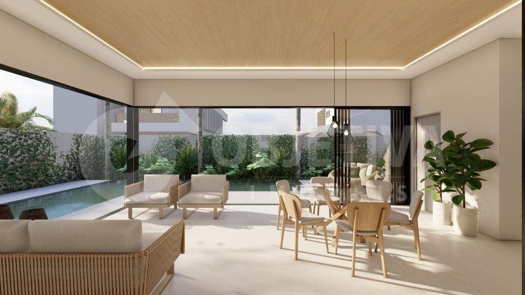 Magnífica casa nova, estilo sobrado de alto padrão, no condomínio fechado dentro do bairro planejado Granja Marileusa, uma região nobre de Uberlândia. A casa está em fase de acabamento e será entregue com todos os móveis planejados (armários em todos os quartos, suítes, nos banheiros e na cozinha, que será entregue com micro-ondas, fogão e forno elétrico, além da coifa). O acabamento da casa é de altíssimo padrão, com materiais de fino acabamento, projeto moderno e muito bem executado. São 347 metros quadrados de área construída em um terreno amplo de 485 metros quadrados. A casa será entregue com elevador instalado. Toda climatizada (ar condicionado em todos os cômodos). Os ambientes são integrados, com uma sala enorme em dois ambientes climatizada e com pé direito duplo. Há também uma ampla cozinha, espaço gourmet com uma segunda cozinha de apoio, lavabo social, piscina em formato de L aquecida com hidromassagem e iluminação (com um lindo revestimento), jardim e paisagismo. A casa conta com 4 quartos, todos suítes: 1 suíte no piso inferior e outras 3 suítes no piso superior. Há ainda uma sala de TV (espaço cinema) no piso superior e uma despensa. A garagem comporta 4 carros, sendo 2 cobertos. A fachada é maravilhosa e imponente. Vale a pena conhecer esse imóvel e cada detalhe encantador que ele oferece. DETALHES - Ar condicionado em todos os ambientes - Som JBL - Aquecimento piscina com iluminação em LED - Paisagismo completo - Churrasqueira com coifa - Cortinas em todos os ambientes - Enriquecemos os armários planejados em todos os ambientes e detalhes em espelhos.