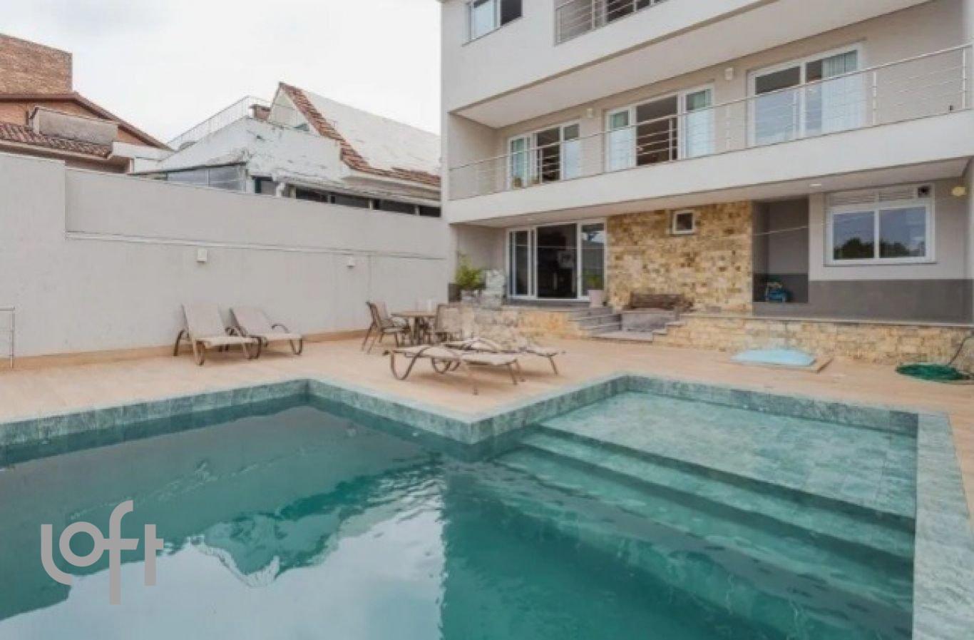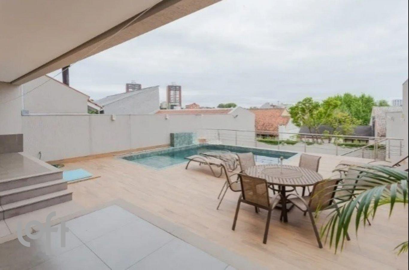 Casa de 447m² privativos em um terreno de 404m², com 4 dormitórios (3 suítes), sendo duas com sacada e a suíte master com closet e hidromassagem. Hall de entrada com porta pivotante, amplo living com lareira, churrasqueira e sacada com conteúdo removido para o bairro, espaçoso pátio com piscina, amplo terraço com vista 360° para o bairro e um aconchegante espaço gourmet com churrasqueira e lavabo. 3 espaços gourmets em ambientes diferentes, lavabo, cozinha planejada, área de serviço, espera para elevador, depósito e 4 vagas de garagem cobertas. Paisagismo imponente, conteúdo removido de diversos ambientes e ampla piscina revestida com pedra hijau. Localizada no Bairro Chácara das Pedras, próximo ao Shopping Iguatemi, Parque Germânia e com fácil acesso à Nilo Peçanha.