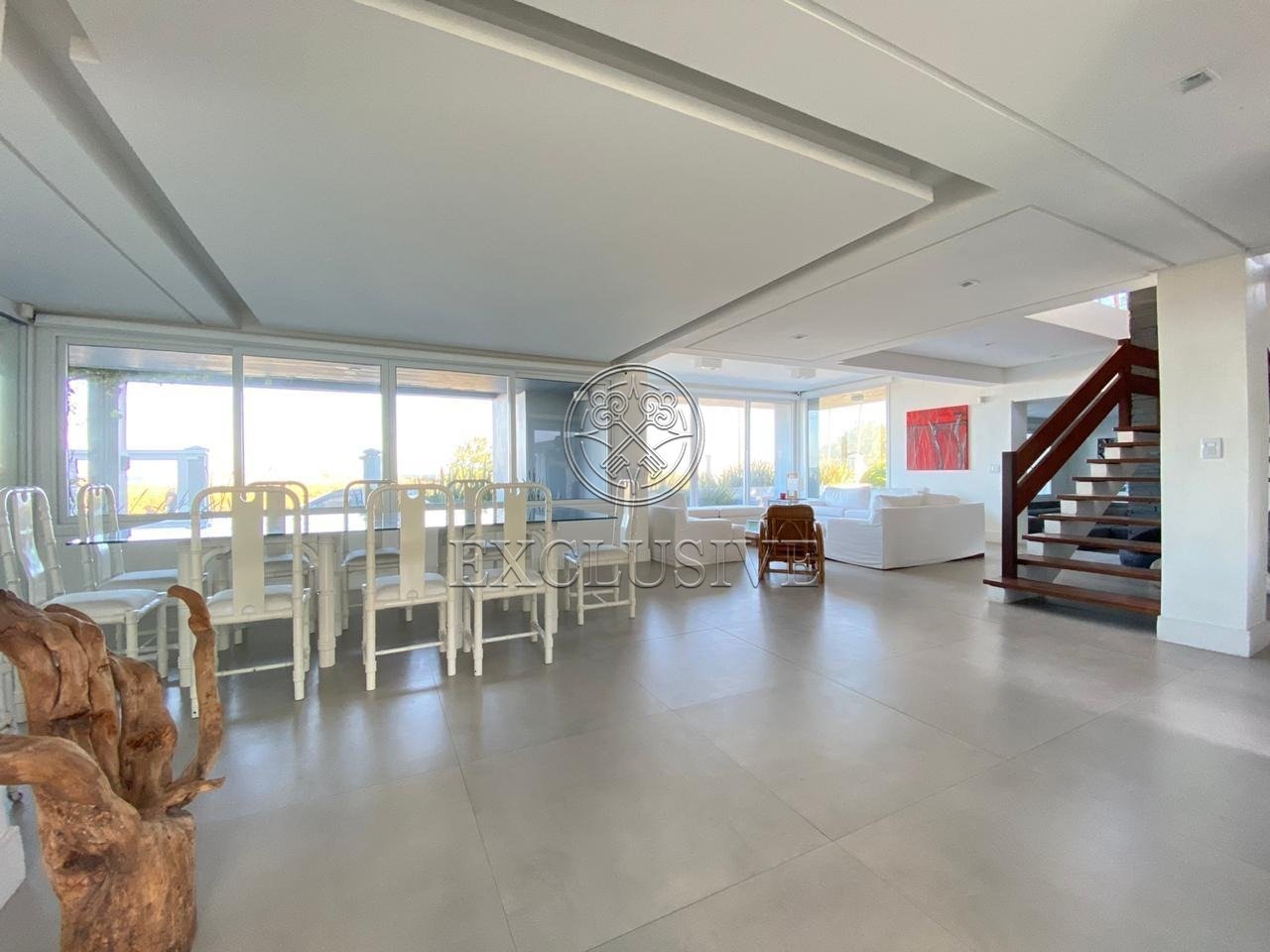 Residência à beira mar na praia de Atlântida. Imóvel com seis suítes, todas com vista para o mar, salão de festa com churrasqueira e forno de pizza, sala com lareira, salas de estar e jantar no térreo e no piso superior com vista para o mar. Dois lavabos, no térreo e andar superior, dependência para auxiliar e seis vagas de garagem, sendo duas cobertas. Terreno com aproximadamente 1.000m².