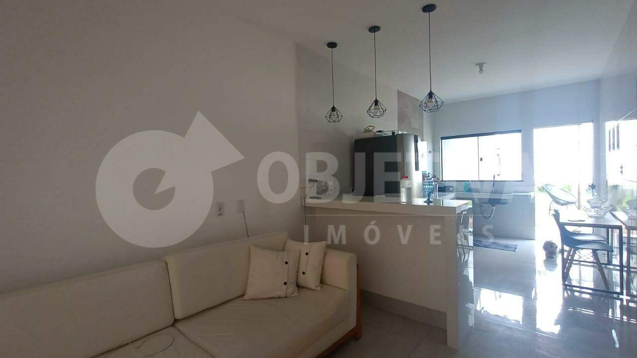 Excelente casa disponível para venda na parte alta do bairro Canaã. O imóvel conta com 250m² de terreno e aproximadamente 60m² de construção. Casa semi-nova com 2 anos de construção. Dispondo de 2 quartos, banheiro social, sala cozinha, lavanderia separada, jardim gramado nos fundos. Garagem para mais de dois veículos. Acabamentos em porcelanato, blindex, lustres e passeio em pedra macaquinho. Localização em avenida comercial a 150 metros do terminal Canaã. Proprietário analisa proposta. Vamos te ajudar na negociação.