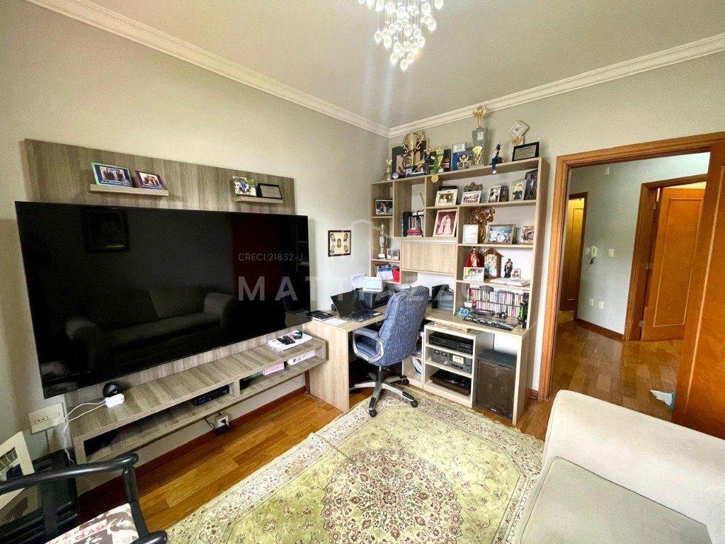 Se você procura um lar que combine conforto, estilo e lazer, essa casa é a escolha perfeita! Com uma planta inteligente e acabamentos de alta qualidade, ela oferece tudo o que você precisa para viver momentos inesquecíveis com sua família e amigos. O imóvel contém no Piso Superior: - Hall, - 04 Dormitórios, sendo 02 suítes, a master com hidro e closet e elevador, - Corredor com roupeiro, - Banheiro social. Térreo: - Sala de estar, jantar e home theater, - Lavabo, - Cozinha com sala de almoço, - Despensa, - Lavanderia, - Banheiro de serviço, - Espaço gourmet coberto e completo com forno de pizza, - Área de lazer com piscina aquecida e cascata, - Garagem coberta para 02 veículos. Todos os ambientes climatizados, pisos porcelanato e madeira, energia fotovoltaica. Venha conversar com nossos corretores.