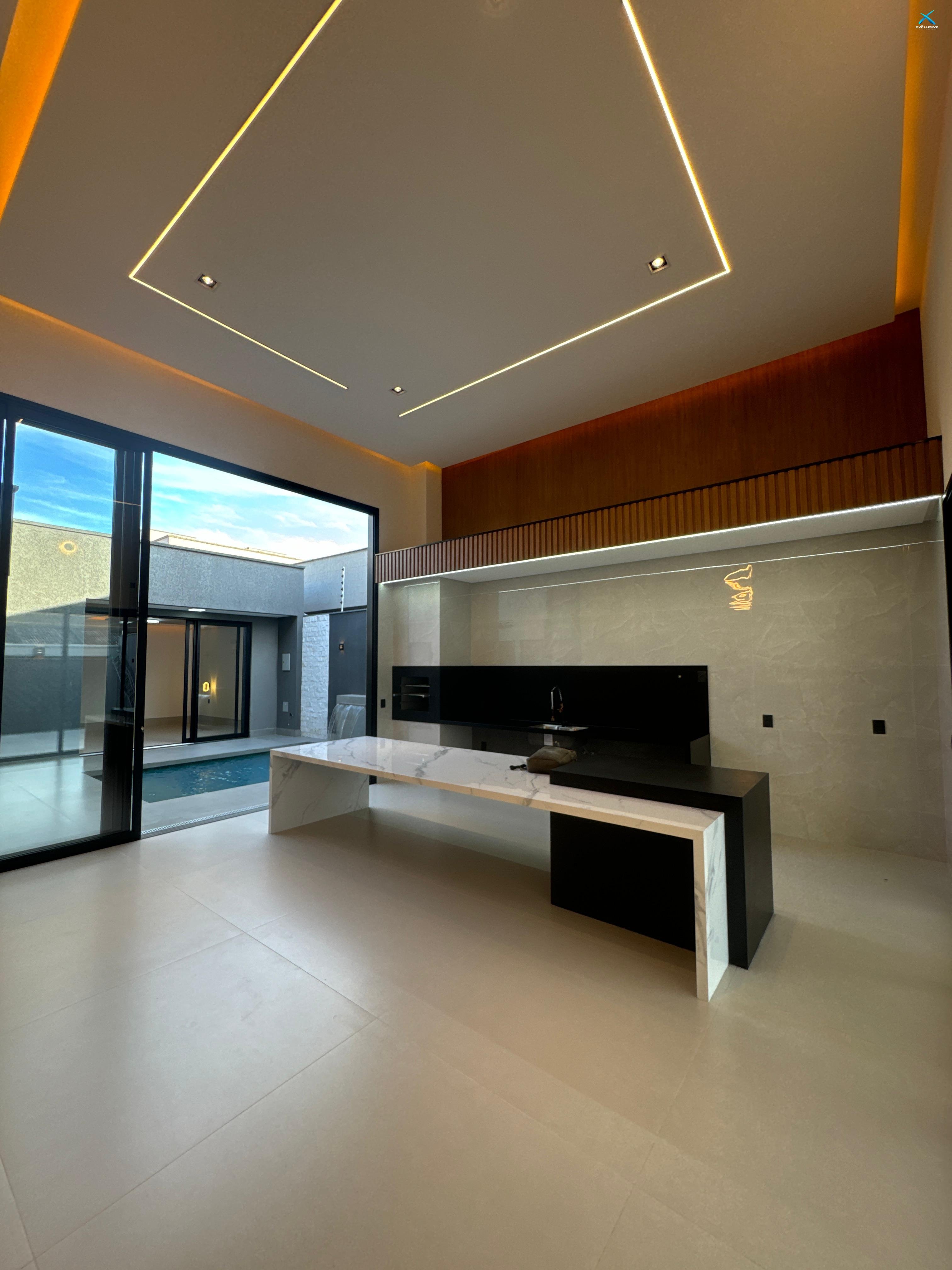 São 238 m² de construção em lote de 360 m². Possui fachada imponente com paisagismo, garagem para cinco carros (três cobertas), projeto luminotécnico 100% em LED, sala ampla integrada à cozinha e área gourmet, painel ripado e acabamento em porcelanato premium. Conta com churrasqueira a carvão revestida, piscina aquecida com cascata e iluminação em LED, além de três suítes amplas, sendo a principal com closet e painel ripado e a segunda com jardim de inverno. Localização privilegiada, próxima à avenida principal, com fácil acesso a comércios, escolas e serviços.