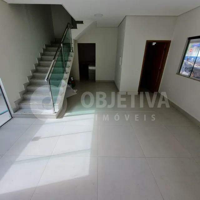 Excelente casa duplex estilo sobrado no bairro Santa Mônica. Dispoe de um terreno de 100m² e 140m² de área privativa construída. Com sala de visita, lavabo social, cozinha integrada com área gourmet e churrasqueira, piso superior com banheiro, 03 quartos sendo um suíte com sacada. Imóvel pronto, aceita financiamento. Vamos te ajudar na negociação.