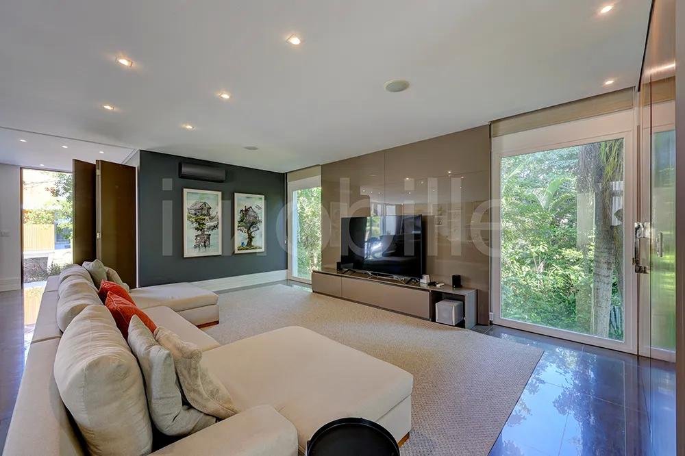 <p><b>MORE COM LUXO E CONFORTO EM CADA DETALHE, EM UM CONDOMÍNIO FECHADO- </b>Belíssima casa distribuída em 04 pavimentos com 873 m² privativos. Foi projetada para proporcionar conforto, sofisticação e funcionalidade em todos os detalhes, estando situada em um ambiente único, ao lado de uma área de preservação natural e proporcionando um ambiente com mais privacidade e em contato à natureza. </p><p>O térreo oferece um amplo living, com uma espaçosa sala de estar, equipada com uma lareira, conectada a uma sala de TV e uma sala de jantar. A cozinha é integrada à varanda e ao deck, que se estendem ao lado de um belo gramado. O ambiente também conta com um lavabo e um escritório.</p><p>No primeiro piso, conta com 05 suítes, sendo 02 suítes com closet e 01 suíte master com dois closets e dois banheiros. O piso ainda conta com um cinema, perfeito para momentos de lazer e entretenimento com a família e amigos.</p><p>No segundo piso, o imóvel se destaca com uma área gourmet equipada com churrasqueira a carvão e parrilha, piscina privativa, sacada, solarium e lavabo. </p><p>No subsolo, encontra-se uma ampla garagem com capacidade para 6 carros, além de uma dependência completa, uma grande área de serviço e um lavabo exclusivo para funcionários.</p><p>Além disso, a residência possui espera para elevador, oferecendo ainda mais comodidade e acessibilidade para todos os moradores. </p><p>Localizado na Praia Brava, é considerado um dos condomínios mais sofisticados da região, com área de lazer completa, espaço verde e em uma das praias mais requisitadas e preservadas, combinando respeito à natureza com conforto, charme e segurança.</p><div>Imóvel disponível para visitação.</div><div>Agende uma visita e venha conhecer este lindo imóvel.</div><div>Os valores estão sujeitos a alteração sem aviso prévio. </div>