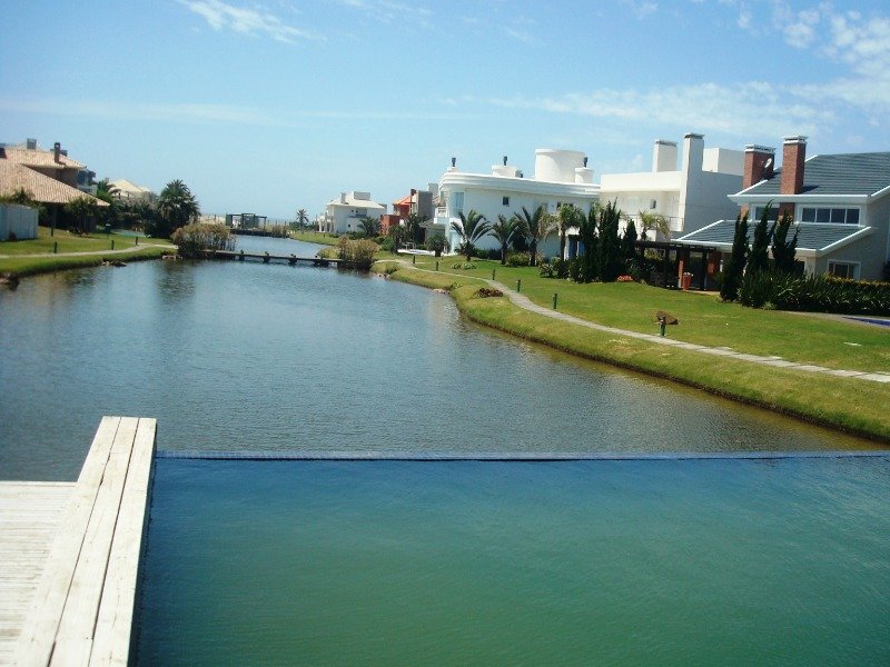Sobrado frente norte mobiliado no condomínio, em Xangri-Lá. - 05 suítes, sendo 01 térrea e 01 máster com closet e banheira; - Lavabo; - Living integrando 04 ambientes; - Estar com lareira; - Estar íntimo com acesso à piscina; - Sala de jogos; - Cozinha americana com churrasqueira; - Dependência de empregada completa; - Área de serviço; - Piscina em concreto com aquecimento solar; - Abrigo para 02 carros.