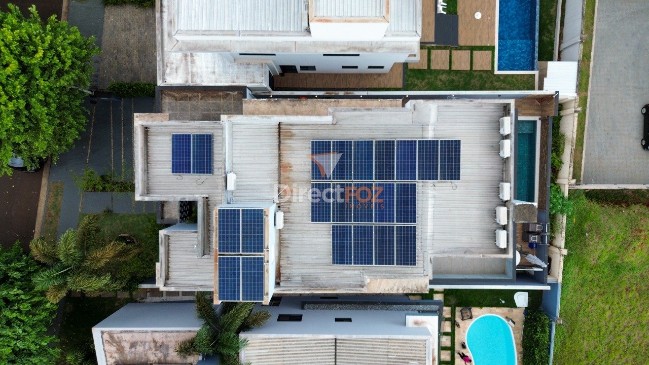 Sobrado de Alto Padrão para locação no Condomínio Terras Alphaville II - Foz do Iguaçu Terreno: 373,80 m² | Construção: 335,00 m² Composição: - 01 Suíte máster com closet - 01 Suíte com closet - 02 Demi suítes - Dormitório para visitas - Escritório - Sala de estar e jantar com pé direito duplo - Cozinha integrada ao espaço gourmet - Espaço gourmet com churrasqueira - 5 banheiros e 1 lavabo - Lavanderia - Piscina com aquecimento e vista para o pôr do sol - Garagem Diferenciais: - Ambientes climatizados - Aquecimento solar para água com boiler - Geração de energia fotovoltaica - Persianas automatizadas com tela - Sacada com pomar - Porão - Móveis planejados Condomínio Completo: - Piscina adulta com raia de 25 metros e piscina infantil - Deck molhado e solarium - Quadras esportivas e quadra de tênis - Salão de festas com cozinha e espaço gourmet - Churrasqueira e forno de pizza - Fitness Center - Segurança 24 horas Localização: Região estratégica com fácil acesso a supermercados, restaurantes, Av. Tancredo Neves e Av. Paraná Valores sujeitos a alteração. Venha conhecer!