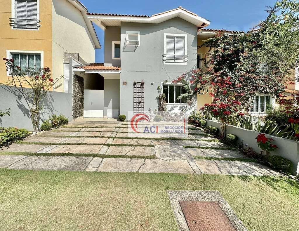 Lindo sobrado semi-geminado com ótima conservação. Muito boa localização, próximo a portaria do condomínio. Armários planejados. Portas e janelas em alumínio e vidro. Pisos inferior em porcelanato e superior em taquinhos Teca. Louças e metais de qualidade. Entrada social. Lavabo social decorado com tampo em travertino. Escada de alvenaria revestida em madeira com corrimão de metal. Living para 2 ambientes integrados, voltados para varanda fechada com espaço gourmet e SPA. TV/música mais reservada com rack, estar, bar e jantar. Cozinha planejada integrada à sala de jantar e varanda, com armários, gabinetes, balcão, bancada em granito e coifa com purificador de ar. Varanda fechada com rack para TV e banheiro completo. Churrasqueira com bancada, gabinete e pia em inox. Spa com hidromassagem e painel para TV. Área de serviço com tanque. Depósito externo coberto. Garagem para 3 vagas descobertas. Aquecimento: Chuveiro elétrico em uso. Com tubulação preparada para gás de passagem. Abastecimento de água: Sabesp. Armazenamento: 500 litros. Esgoto: Sabesp. ÁREA ÍNTIMA - PISO SUPERIOR. Configuração atual: - 2 suítes, sendo a master com ar-condicionado e closet grande com armários planejados (onde seria o terceiro dormitório). Planta ORIGINAL - facilmente reversível para 3 dormitórios / sendo 1 suíte. Banheiros com tampos em granito, espelho, gabinetes e box de vidro e nichos.