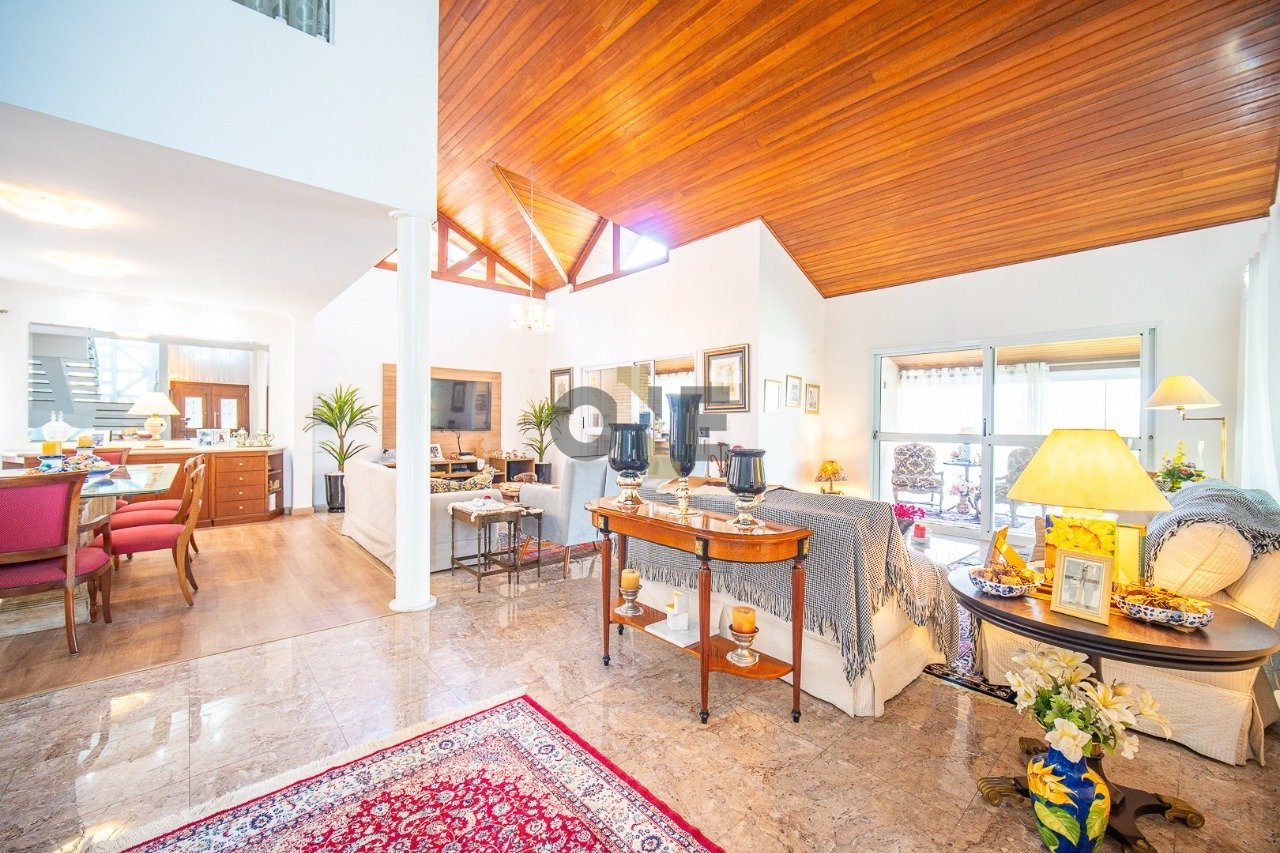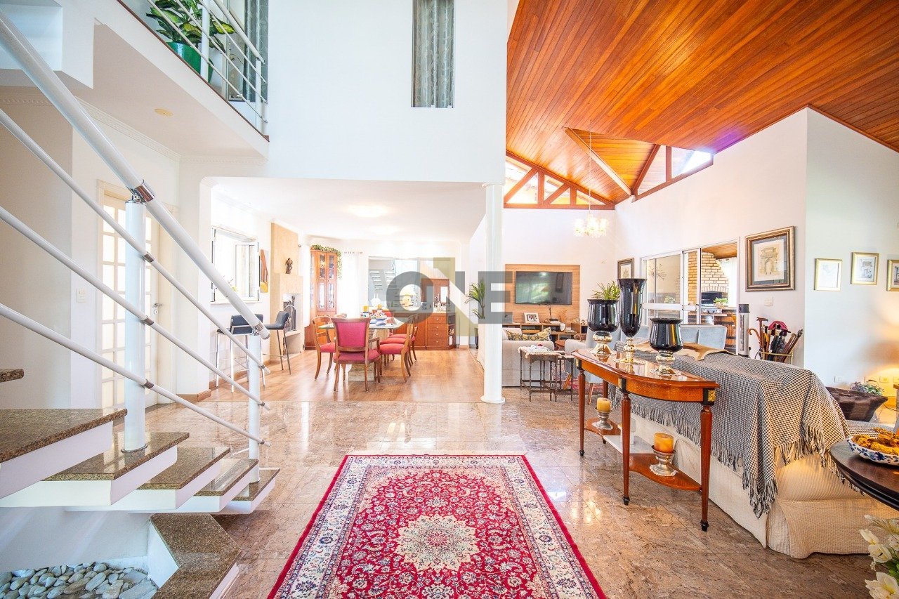 SOBRADO COM SUITE AMERICANA NO PISO TERREO Encante-se com esta charmosa casa no Condomínio Aldeia da Fazendinha, com 268 m² de área privativa e 649 m² de área de terreno. Esta residência combina conforto, elegância e praticidade em um dos bairros mais tranquilos e arborizados da região da Granja Viana. O imóvel dispõe no PISO SUPERIOR: 01 SUITE ampla e iluminada com ar condicionado, com 2 closets e 2 banheiros integrados por uma sala íntima muito charmosa, oferecendo conforto e privacidade total para o casal. No PISO TERREO: 1 SUITE AMERICANA (2 quartos e um banheiro) com armários planejados e muito espaço. Sala de jantar integrada à sala de estar, lareira, pé direito duplo e varanda gourmet com uma vista maravilhosa para o jardim e a área verde do condomínio, espaços ideais para momentos em família e para receber amigos. A cozinha é planejada, funcional e equipada com armários de excelente qualidade, perfeita para quem gosta de praticidade no dia a dia. A casa possui área de serviço e quintal, proporcionando conforto e bem-estar. O condomínio oferece infraestrutura completa, com playground, quadra de esportes e segurança 24 horas, garantindo tranquilidade e lazer para toda a família. Localizada em um bairro nobre e com fácil acesso à Rodovia Raposo Tavares, esta casa é ideal para quem busca viver cercado pela natureza, sem abrir mão da comodidade e da segurança.