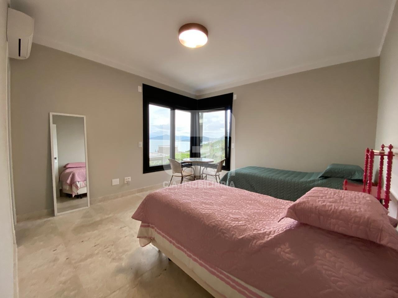 Casa de 3 dormitórios à venda no Cacupé, em Florianópolis. Linda casa em condomínio no Cacupé, com projeto contemporâneo e posição privilegiada, oferecendo vista para o mar e para a mata nativa. O condomínio possui amplo recuo entre as residências e é cercado por outros dois condomínios com áreas de preservação permanente, garantindo total privacidade e contato com a natureza. O terreno possui 541,43 m² de área privativa, e o imóvel conta com 323,11 m² de área construída, com habite-se recém-concluído em 2022 e já averbado. Além disso, há um rooftop de 20 m², uma adega de 4 m² e uma ampla área técnica de 13 m² para caixas d’água em inox. São 3 suítes, sendo uma delas master, com closet, banheira e teto em vidro cristalizado refletivo. As salas de estar, TV, jantar e lareira integram-se em conceito aberto à cozinha, que é mobiliada e conta com ilha gourmet em mármore branco. A área com churrasqueira gourmet, também com armários, fica ao lado da cozinha, proporcionando praticidade e conforto. A casa possui despensa, lavanderia com armários planejados, um hobby box interno e dois externos. A garagem comporta até quatro carros, sendo duas vagas cobertas. As esquadrias e persianas automatizadas em PVC preto possuem telas mosquiteiro integradas. Todos os ambientes contam com ar-condicionado. O piso interno é em mármore travertino escovado natural, enquanto o piso externo é em granito jateado. As paredes externas são revestidas, em sua maioria, com mármore travertino e ardósia, e os muros de divisa foram elaborados com as próprias pedras provenientes da escavação da construção. O sistema de aquecimento solar atende aos chuveiros pressurizados, com apoio a gás. A área de lazer inclui piscina e jacuzzi, ambas com aquecimento individual, além de cisterna para captação de águas pluviais. O sistema elétrico do condomínio é subterrâneo, garantindo uma estética mais limpa e moderna. Uma oportunidade única em meio à natureza, com conforto, sofisticação e privacidade. Venha conhecer!