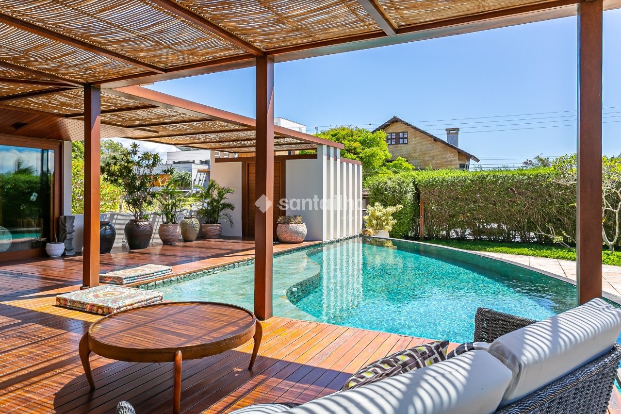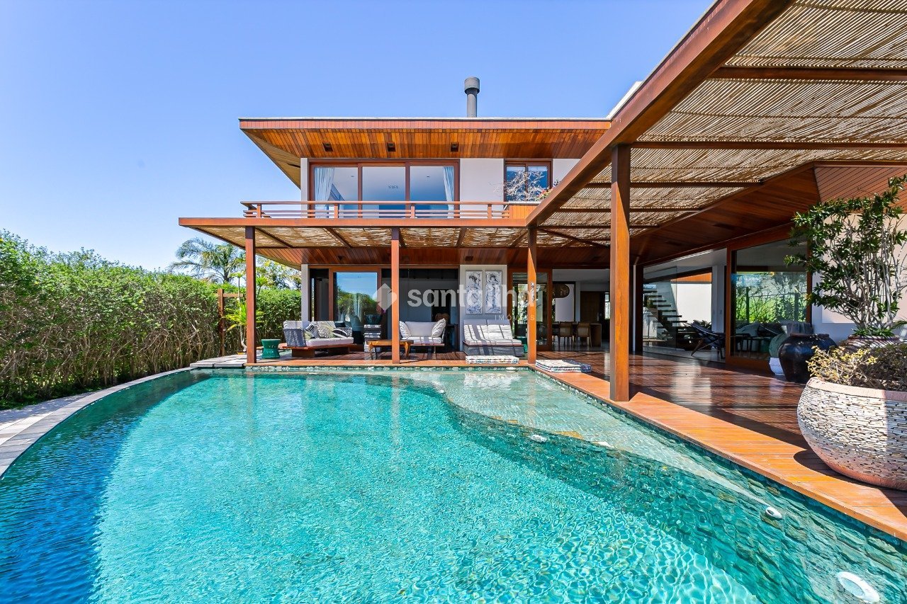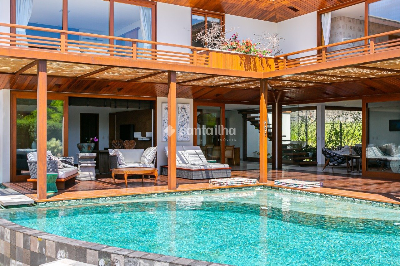 Casa cinematográfica em condomínio fechado no Porto da Lagoa, com três suítes principais no andar superior, todas com vista para o mar. A suíte master merece destaque com 180º de vista panorâmica, banheira de hidromassagem, varanda ampla (perfeita para academia, sala de yoga, jacuzzi ou banho gelado). O térreo conta com uma quarta suíte (com lavabo e chuveiro), que também pode ser acessada de forma independente, ideal para hóspedes ou uso multifuncional. Há ainda escritório, brinquedoteca, jardim de inverno e um living incrível com home theater, toda decorada com móveis de alto padrão e obras de arte. A área gourmet é integrada ao living, com churrasqueira e uma mesa exclusiva. Cozinha, copa, lavanderia e escada de acesso à garagem completam o piso. No subsolo, a casa oferece uma suíte de serviço, depósito fechado, três vagas cobertas, sala de máquinas, oficina e estrutura completa para manutenção. O aquecimento da água é feito por placas solares, com suporte elétrico automático. Externamente, a casa é toda avarandada com deck de ipê rosa, piscina com borda infinita, pedras importadas, jacuzzi com cromoterapia e acesso à praia por trilha exclusiva do condomínio com portão eletrônico, a menos de 300m do portão. Detalhes do imóvel: - 4 Dormitórios (Sendo 3 suítes e 1 suíte master) - 5 Banheiros - 3 Vagas de garagem cobertas - Escritório - Brinquedoteca - Jardim de inverno - Financiável - Localizado no bairro Rio Tavares - Piscina com borda infinita e pedras importadas - Jacuzzi com cromoterapia - Acesso exclusivo à praia por trilha do condomínio, com portão eletrônico (a menos de 300 m do portão) Entre a Lagoa da Conceição e o Campeche, está o Rio Tavares. Muito bem localizado por ser a principal artéria de ligação entre as regiões norte, leste e central, faz com que o bairro tenha uma boa infraestrutura com grande variedade no comércio. O local é tranquilo e conhecido por ser o bairro do skatista Pedro Barros, campeão mundial e medalhista olímpico. Com vasta área de dunas e restingas que protegem a orla, possui um papel ambiental e socioeconômico importante.