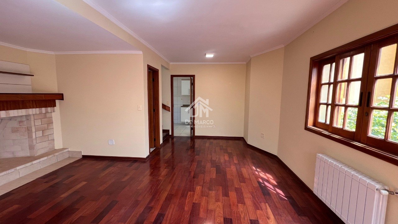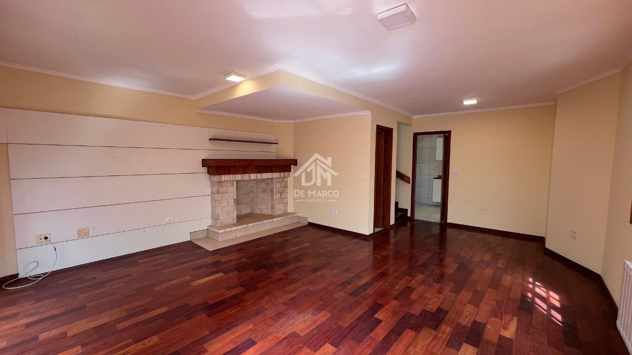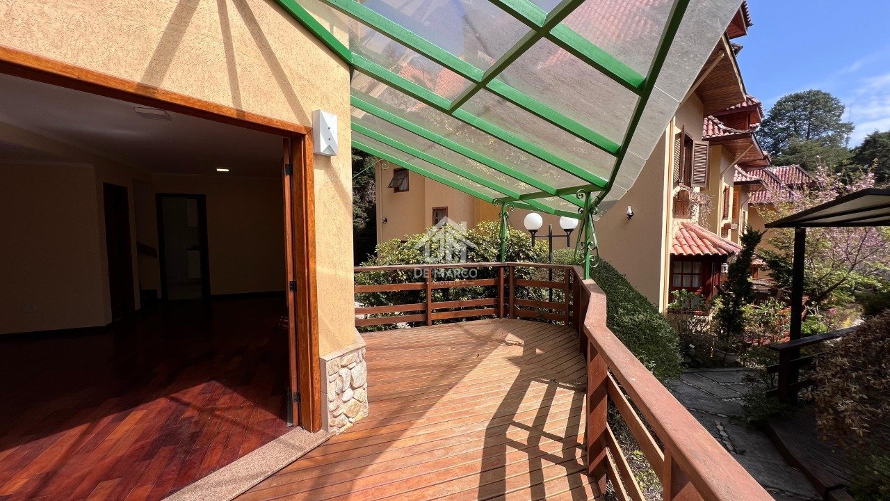 Localizada em condomínio fechado, imóvel com 3 pavimentos em meio à natureza. A casa dispõe de 5 dormitórios, sendo 4 suítes, escritório, totalizando 220 m² de área construída em terreno de 250 m². No térreo, há amplas salas de estar e jantar com lareira, lavabo, cozinha planejada e área de serviço. No piso superior, duas suítes e escritório ou um quarto de hóspedes; no terceiro pavimento, uma sala adicional e mais duas suítes, aquecimento a gás e sistema de calefação nos ambientes internos.