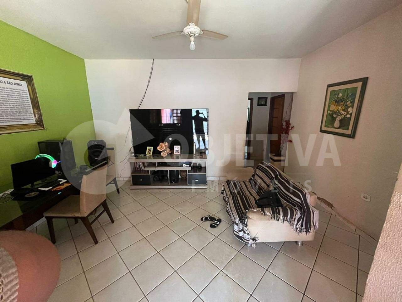 Casa disponível para venda no bairro Jaraguá, em Uberlândia, com 300 m² de terreno e aproximadamente 60 m² de área construída. O imóvel dispõe de 2 quartos, sendo 1 suíte, cozinha com pia e bancada em granito e armários, sala de TV, banheiro social, lavanderia, amplo quintal nos fundos e 3 vagas de garagem descobertas. O proprietário analisa permuta.