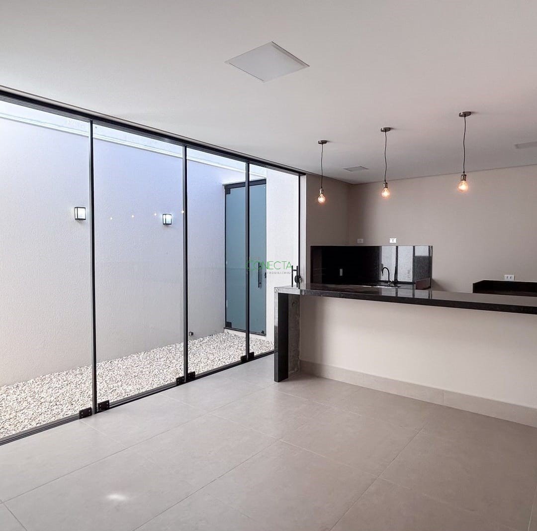 Beleza, funcionalidade e alto padrão, com todo conforto e tranquilidade que sua família merece. - EMPREENDIMENTO DE ALTO PADRÃO - BAIRRO NOBRE E VALORIZADO - ILUMINAÇÃO NATURAL E VENTILAÇÃO - SEGURANÇA E PRIVACIDADE Sala com pé direito alto, cozinha e sala integrada, 3 quartos, sendo 1 suíte, 1 banheiro social, espaço gourmet com churrasqueira, portão eletrônico com motor, interfone, pontos para ar-condicionado split nos quartos e sala, lustres e luminárias, porcelanato polido na sala e cozinha, espelhos nos banheiros, cubas de sobrepor e bancadas em granito, porcelanato amadeirado na área gourmet, piso laminado nos quartos, garagem para 2 carros. *imagens ilustrativas